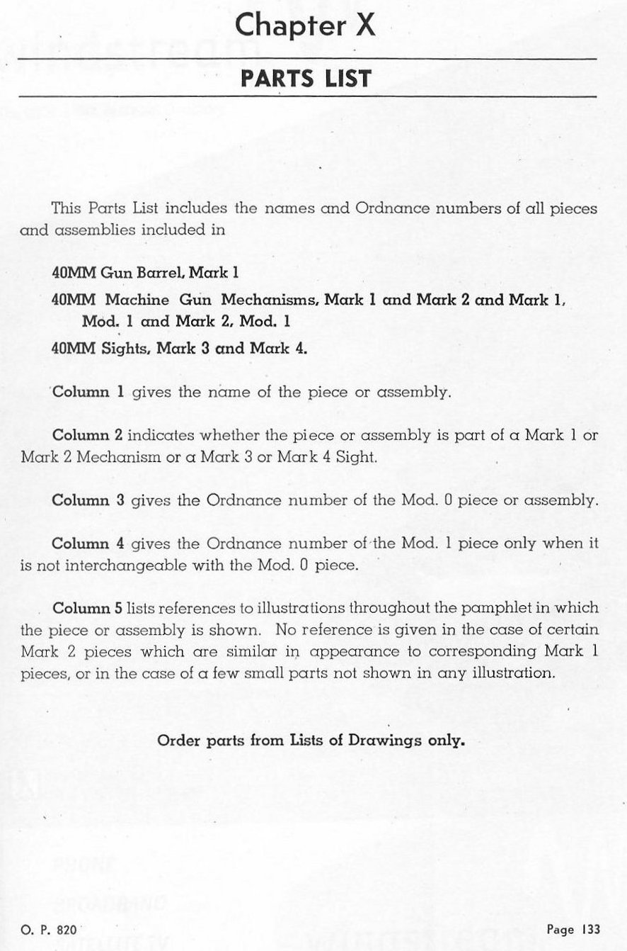 CHAPTER XA PARTS LIST