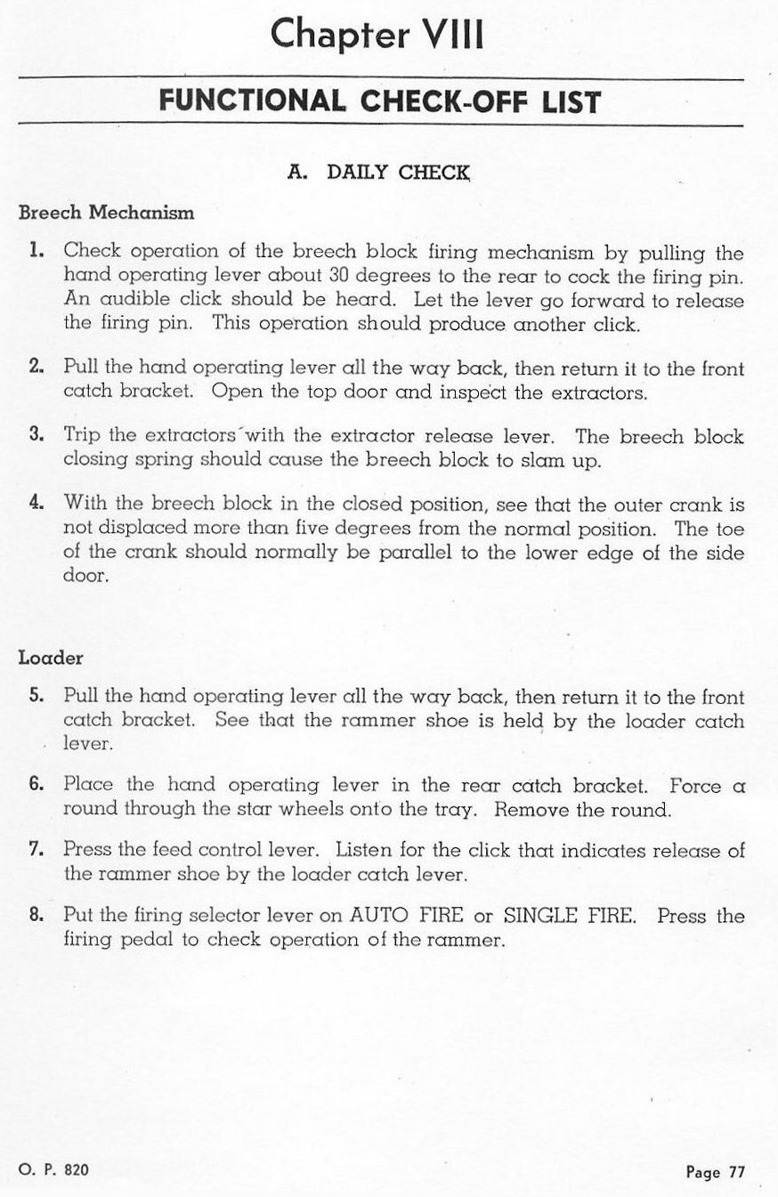 CHAPTER VIII FUNCTIONAL CHECK-OFF LIST