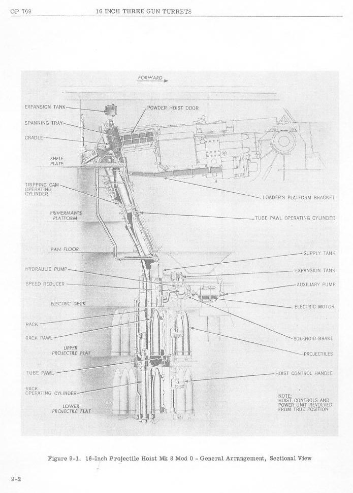 IOWA CLASS BATTLESHIP PICTURES NAVAL ORDNANCE PAMPHLET OP 769 TITLE AND FORWARD CHAPTER 9 PROJECTILE HOIST PROJECTILE HOIST PAGE 1 PROJECTILE HOIST PAGE 2 |