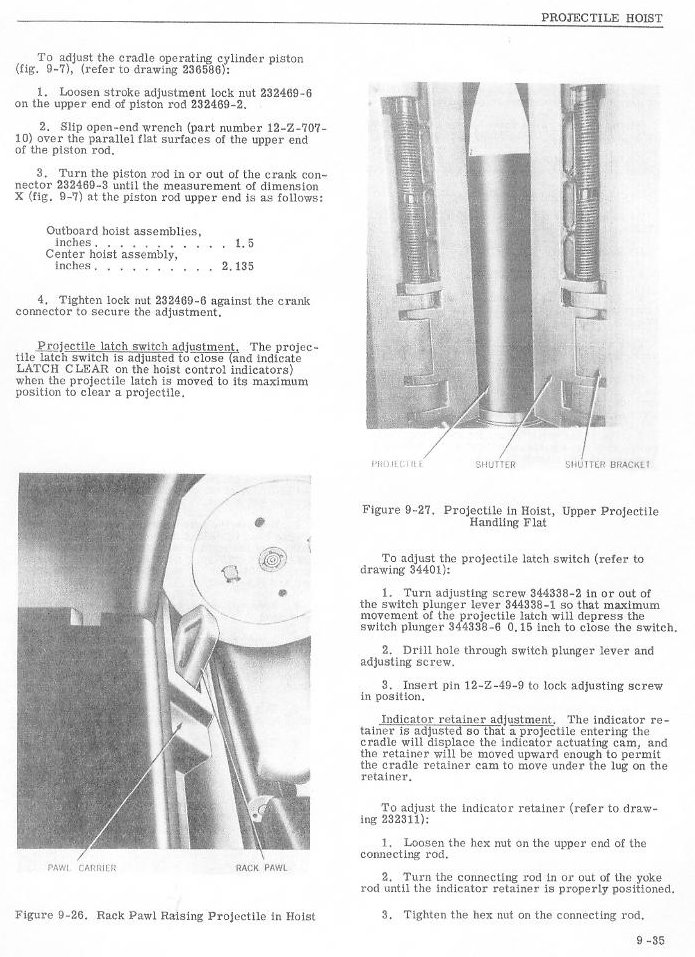 IOWA CLASS BATTLESHIP PICTURES NAVAL ORDNANCE PAMPHLET OP 769 TITLE AND FORWARD CHAPTER 9 PROJECTILE HOIST PROJECTILE HOIST PAGE 1 PROJECTILE HOIST PAGE 2 |