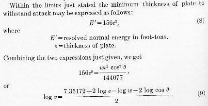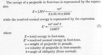 As a rule the angle of attack, or the complement of the angle of obliquity, is taken in degrees as about four times the plate thickness in inches and the caliber of the projectile is taken as about two and a half times the plate thickness for 4-inch plates and twice the plate thickness for heavier plates.
