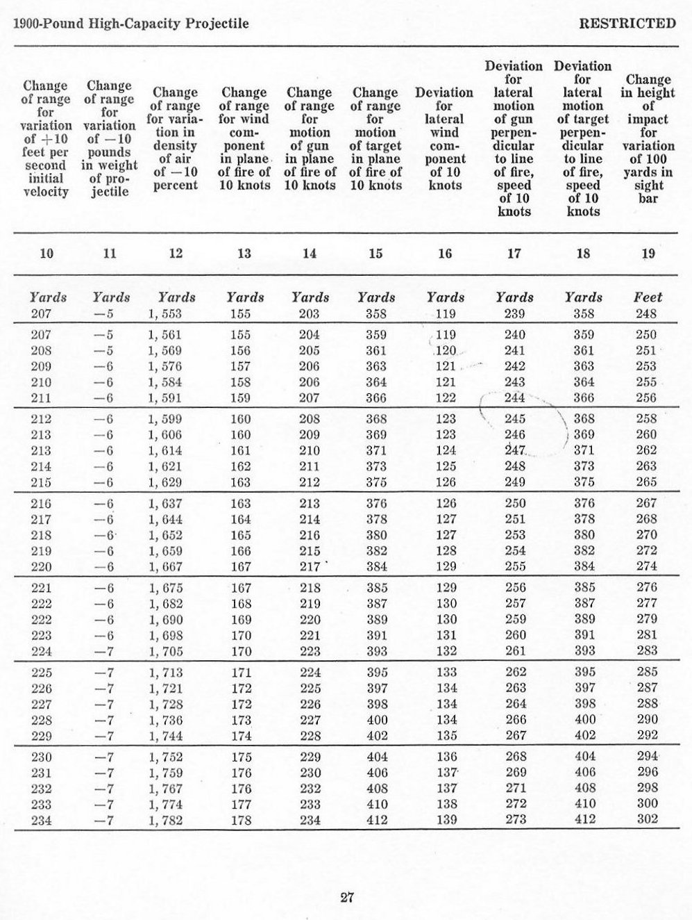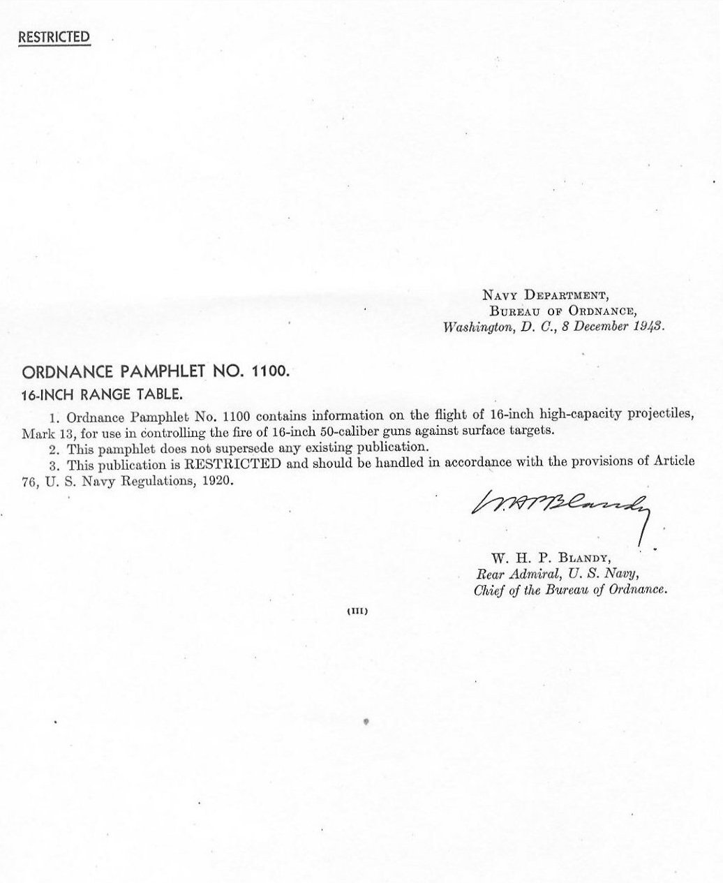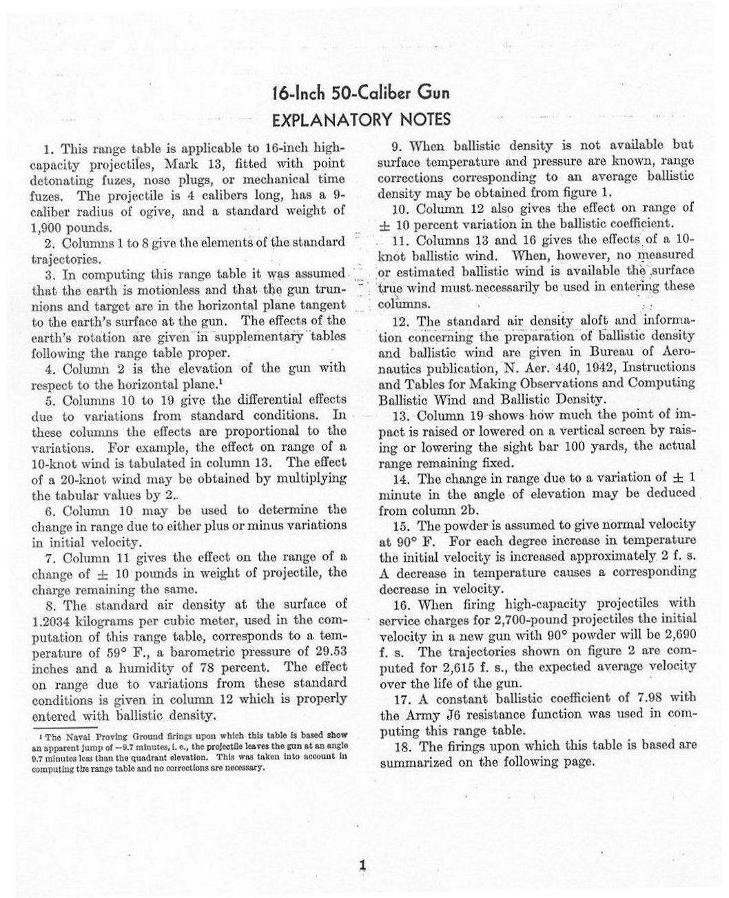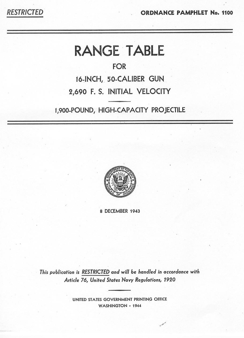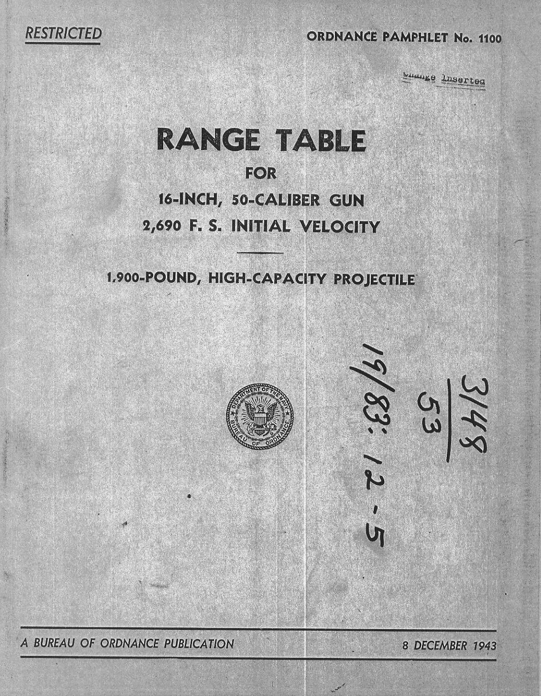 GENE SLOVERS US NAVY PAGES OP 1100 RANGE TABLES FOR THE 16" HC MK 13 Mod 0 1900lb PROJECTILE FOR THE 16"/50 GUN |