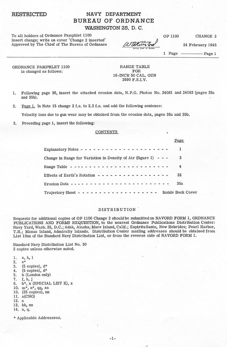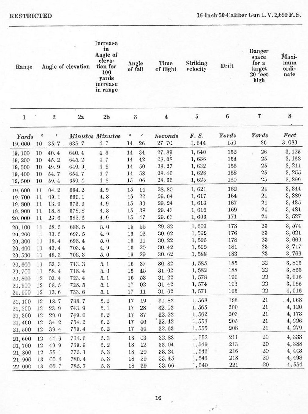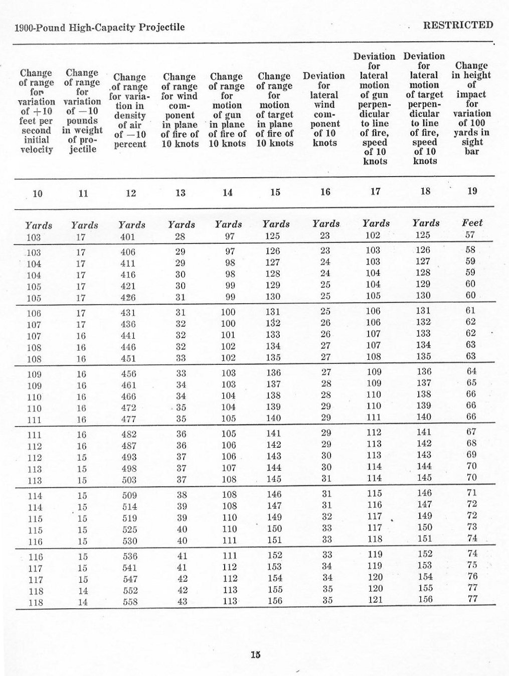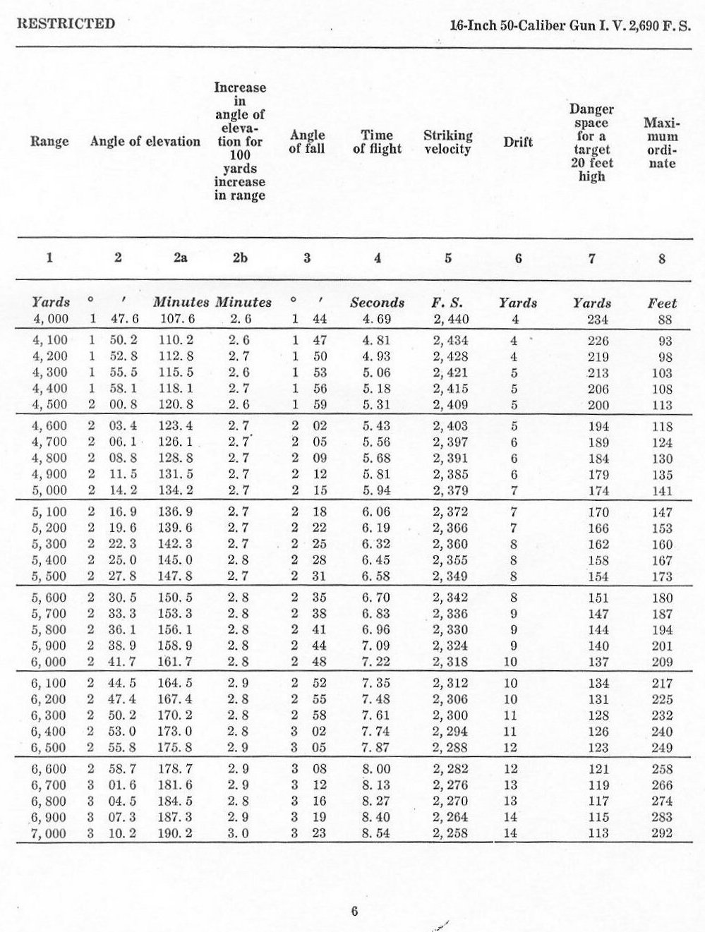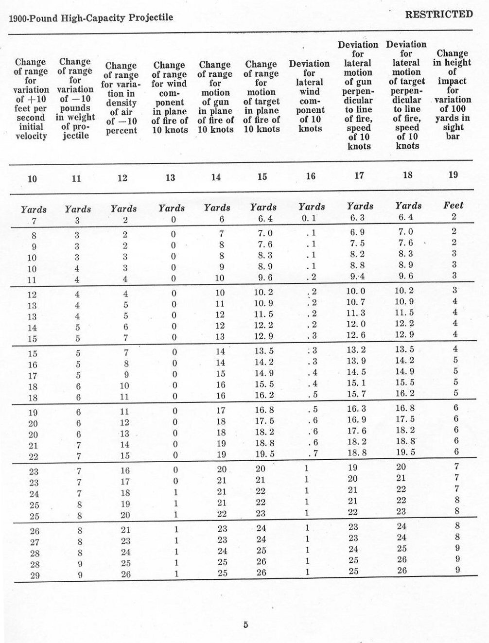 GENE SLOVERS US NAVY PAGES OP 1100 RANGE TABLES FOR THE 16" HC MK 13 Mod 0 1900lb PROJECTILE FOR THE 16"/50 GUN |