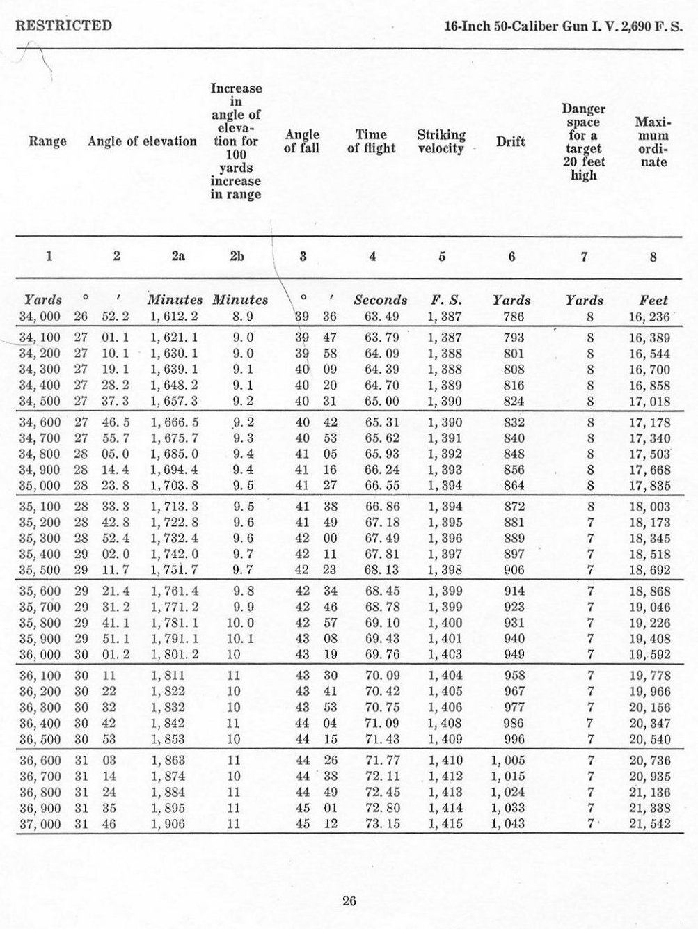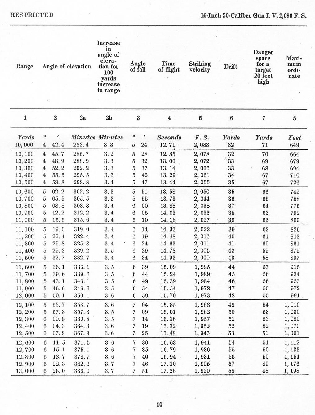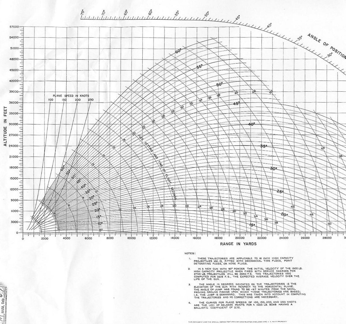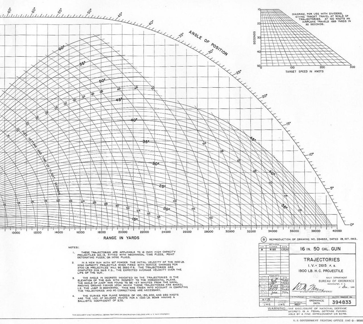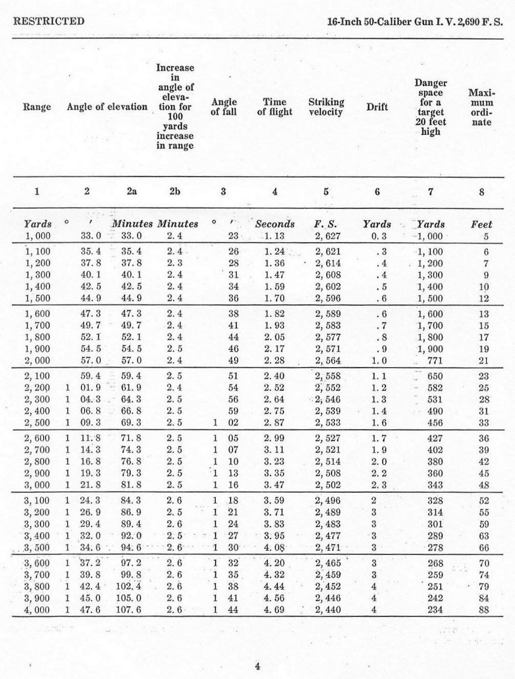 GENE SLOVERS US NAVY PAGES OP 1100 RANGE TABLES FOR THE 16" HC MK 13 Mod 0 1900lb PROJECTILE FOR THE 16"/50 GUN |