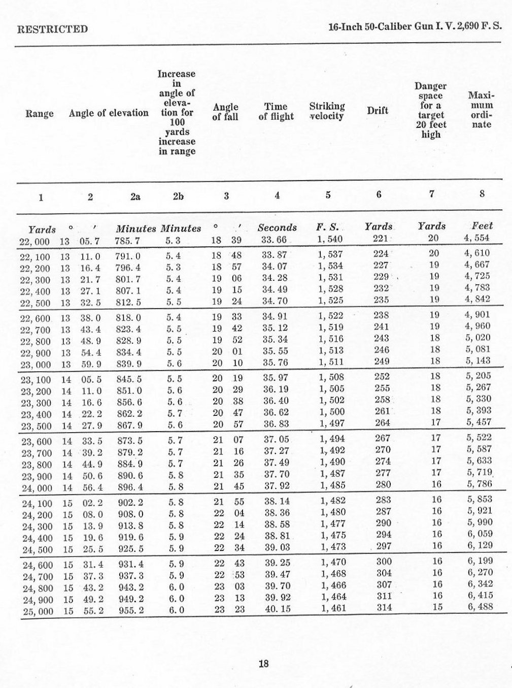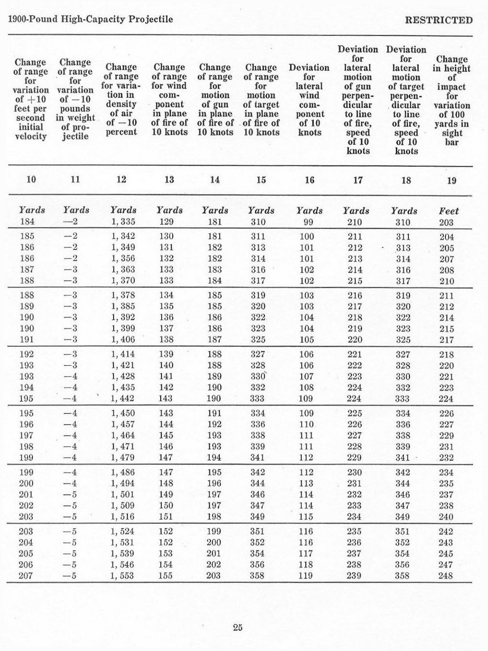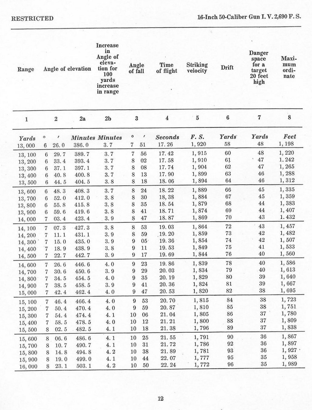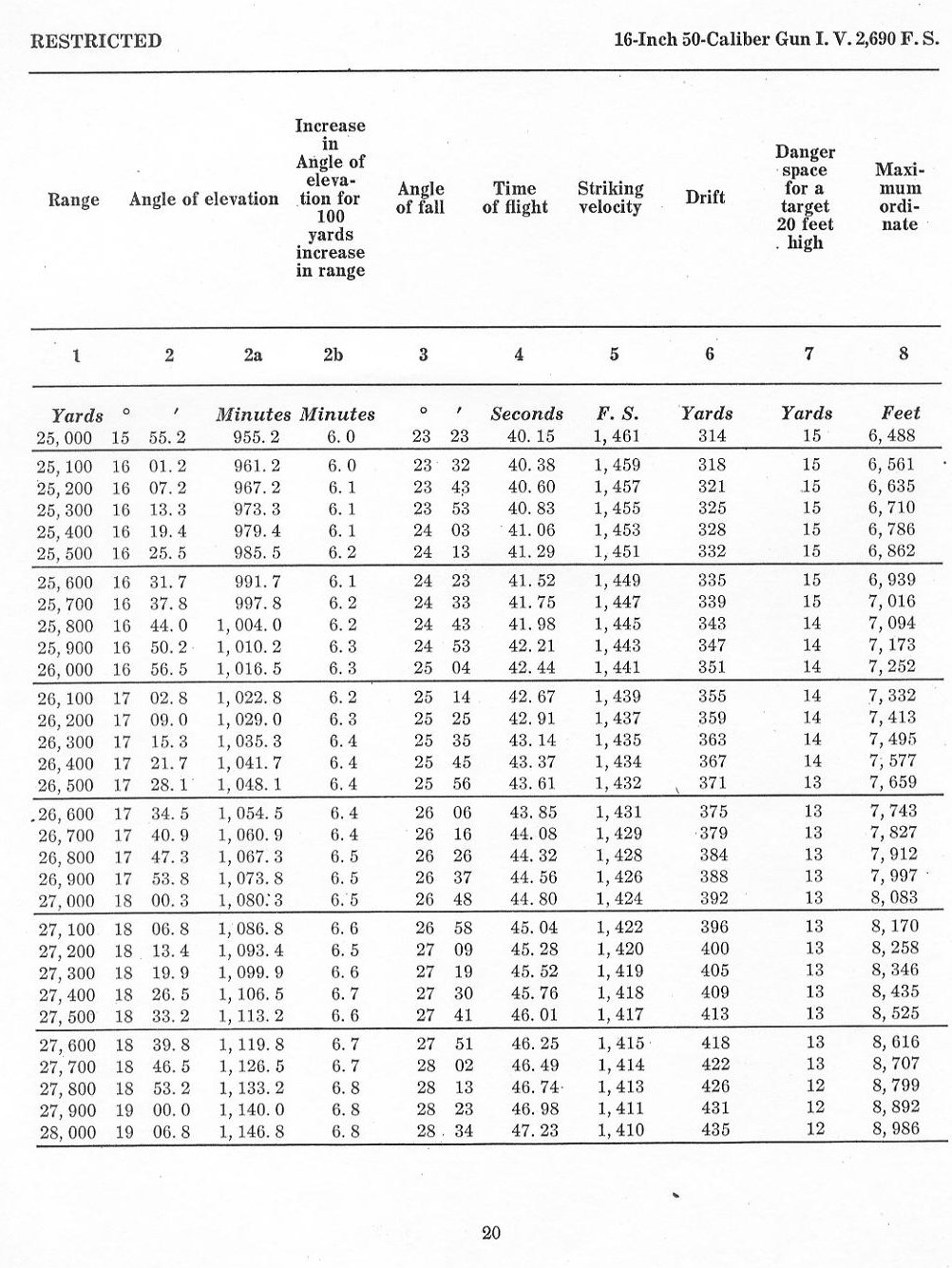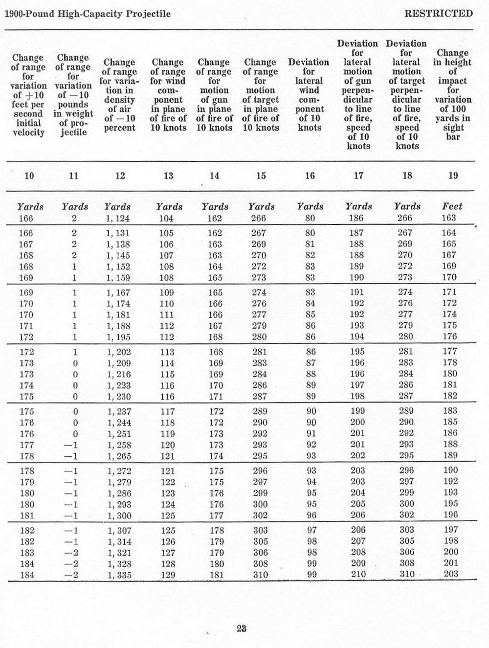 GENE SLOVERS US NAVY PAGES OP 1100 RANGE TABLES FOR THE 16" HC MK 13 Mod 0 1900lb PROJECTILE FOR THE 16"/50 GUN |