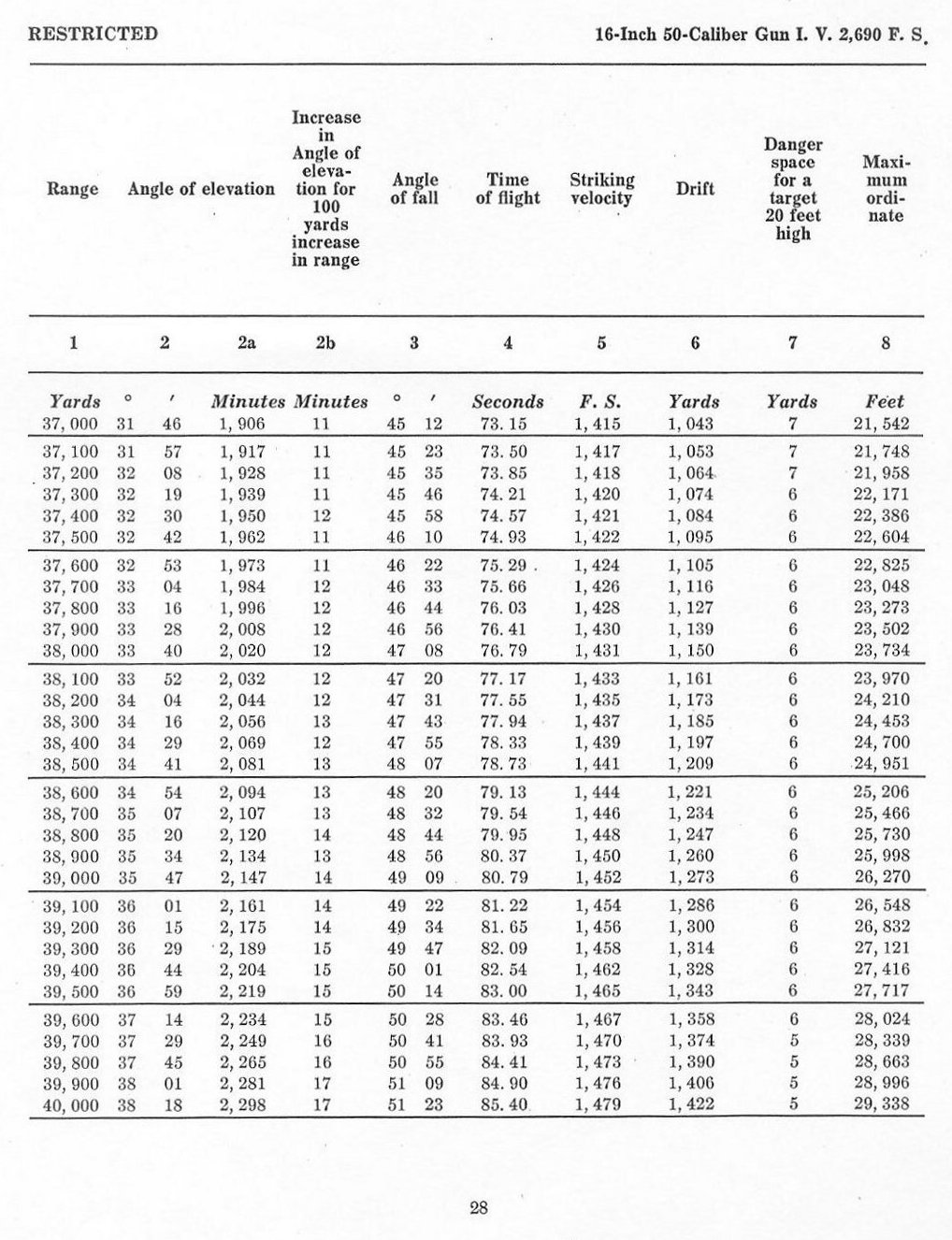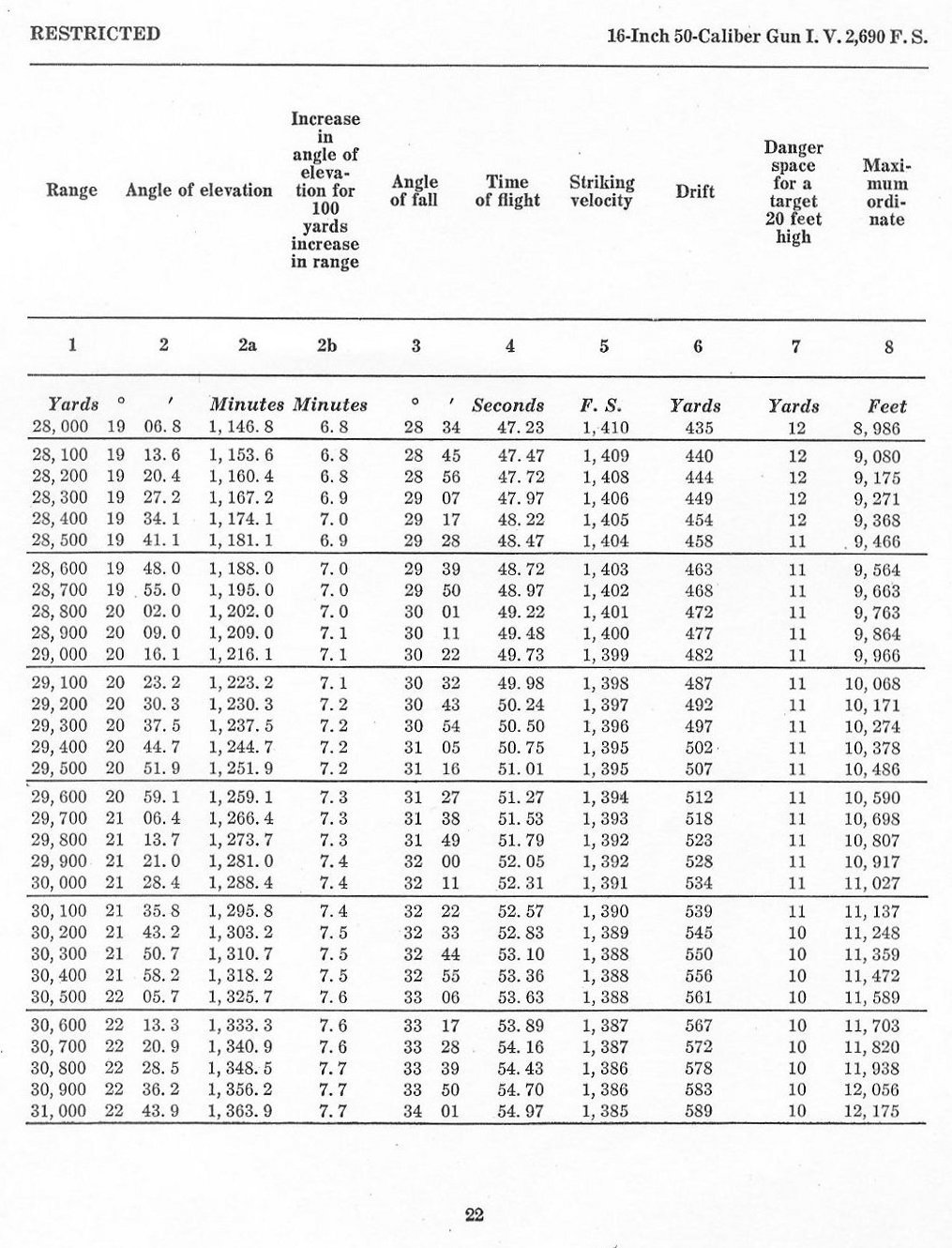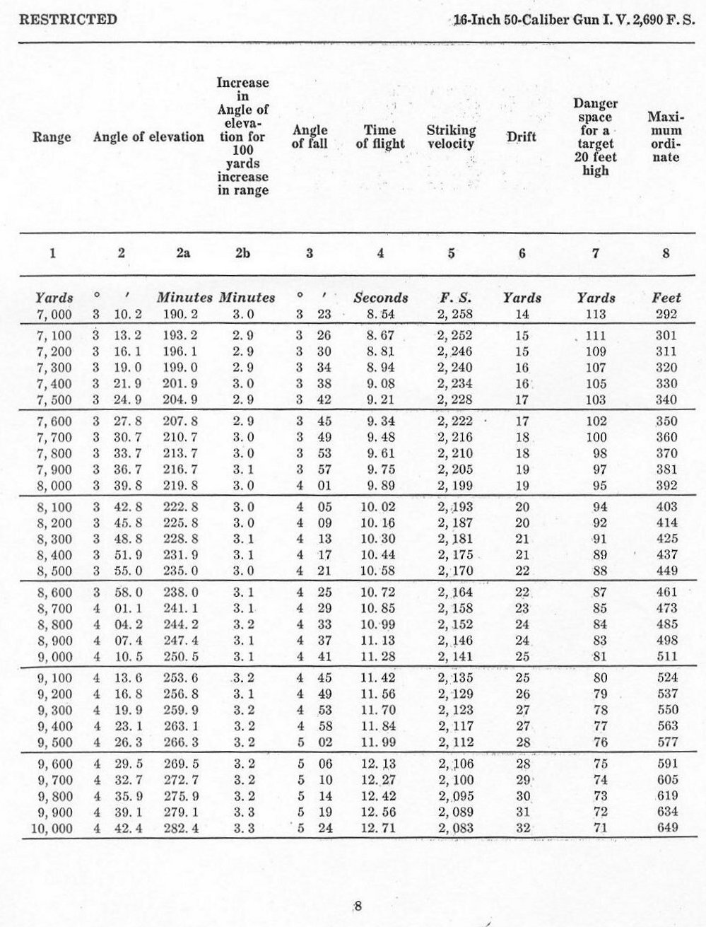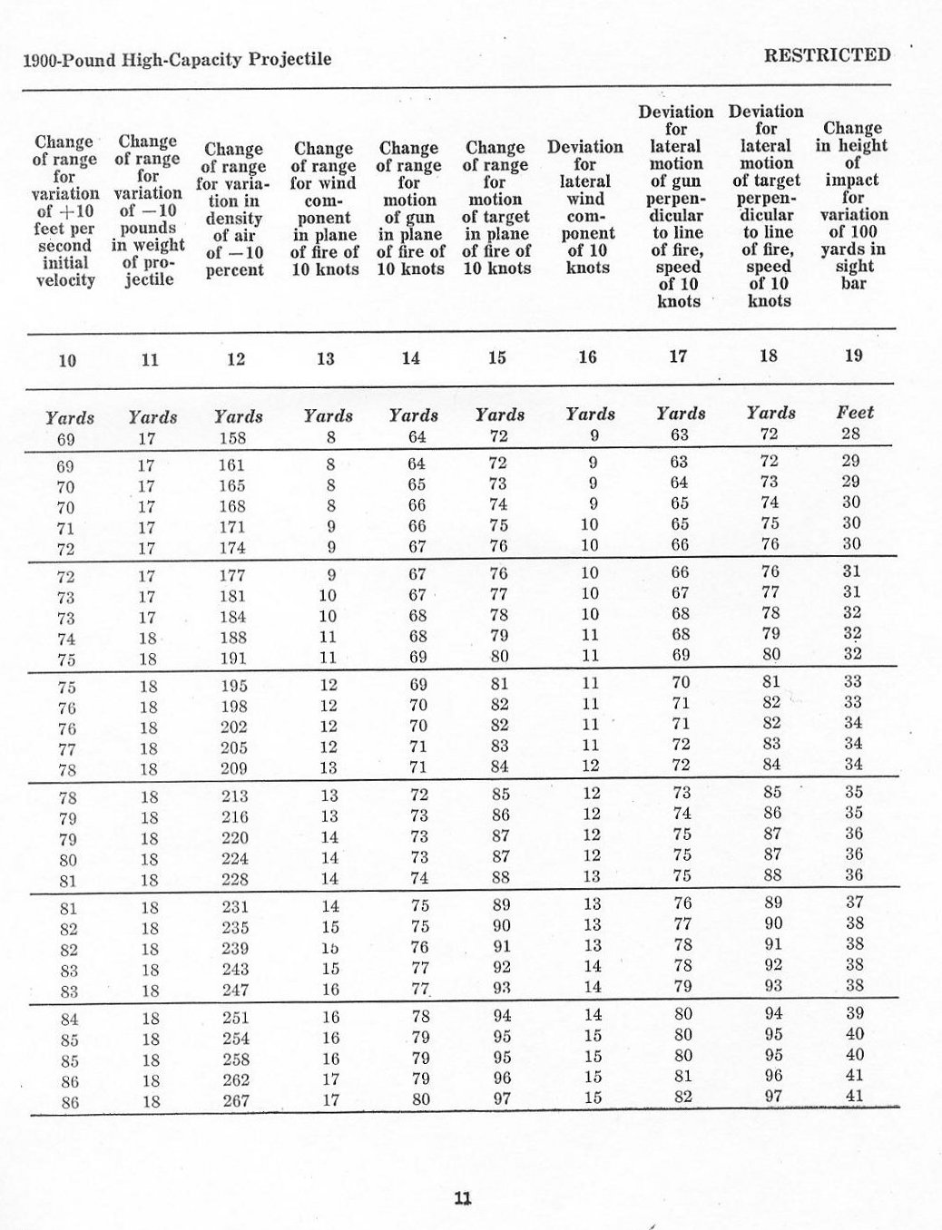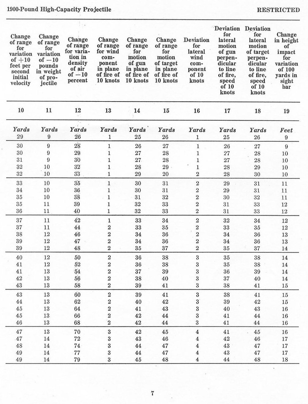 GENE SLOVERS US NAVY PAGES OP 1100 RANGE TABLES FOR THE 16" HC MK 13 Mod 0 1900lb PROJECTILE FOR THE 16"/50 GUN |