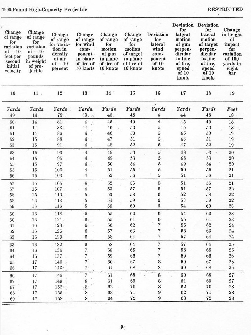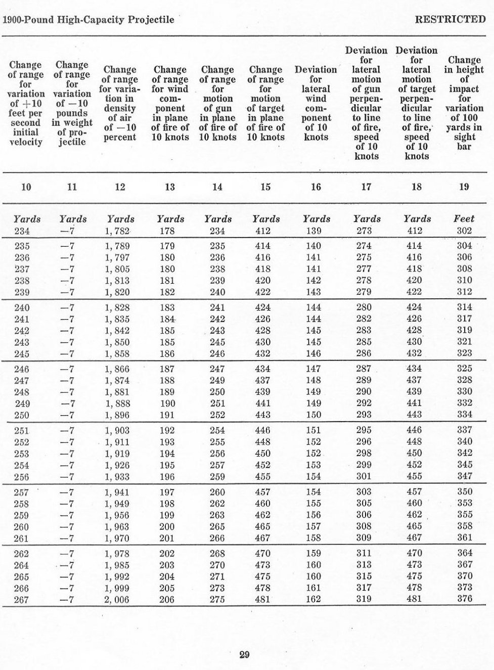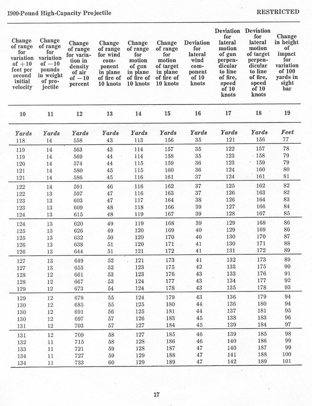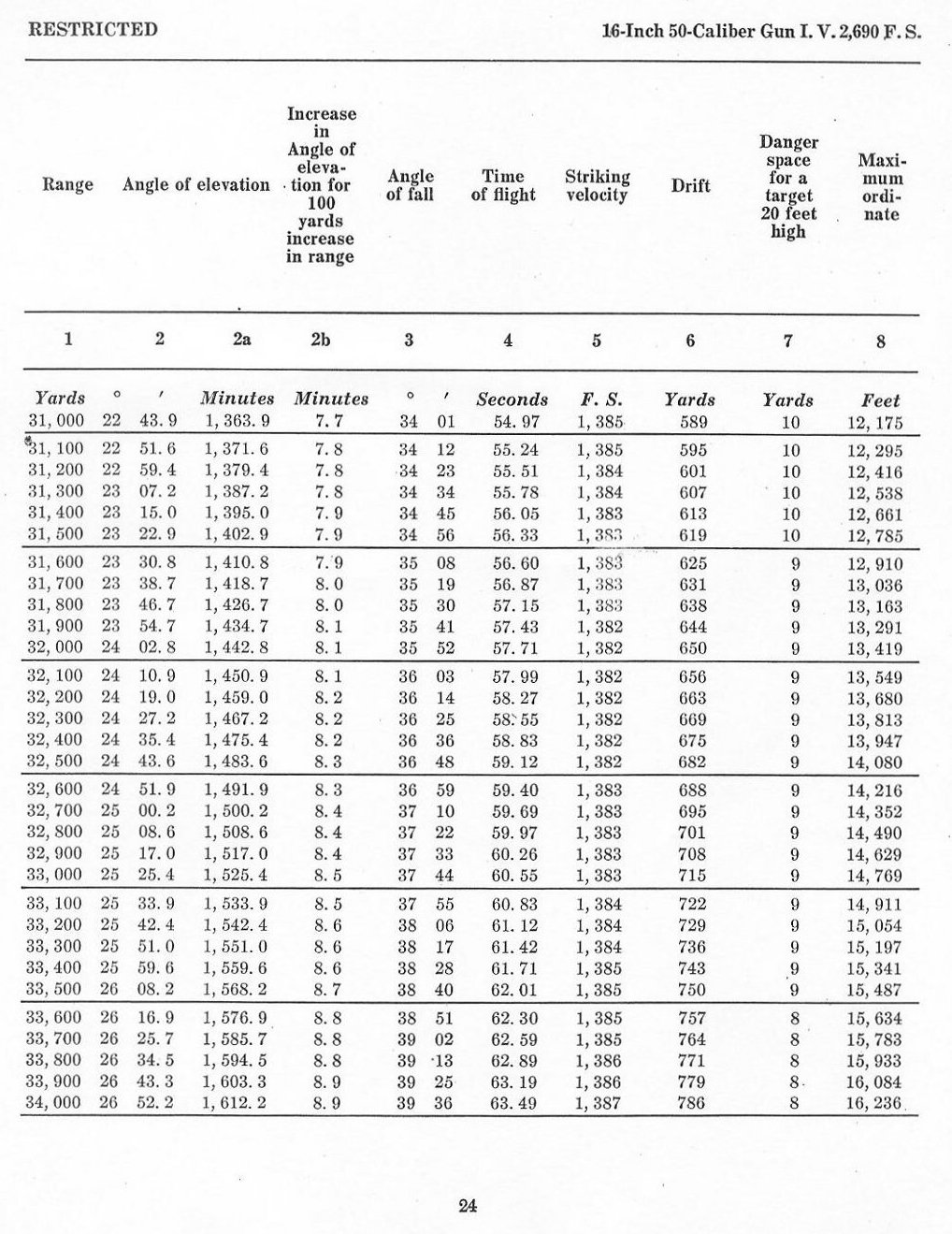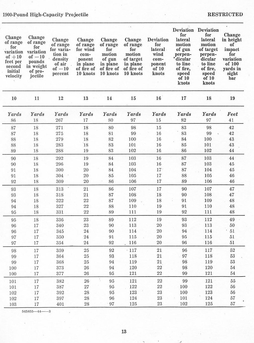 GENE SLOVERS US NAVY PAGES OP 1100 RANGE TABLES FOR THE 16" HC MK 13 Mod 0 1900lb PROJECTILE FOR THE 16"/50 GUN |