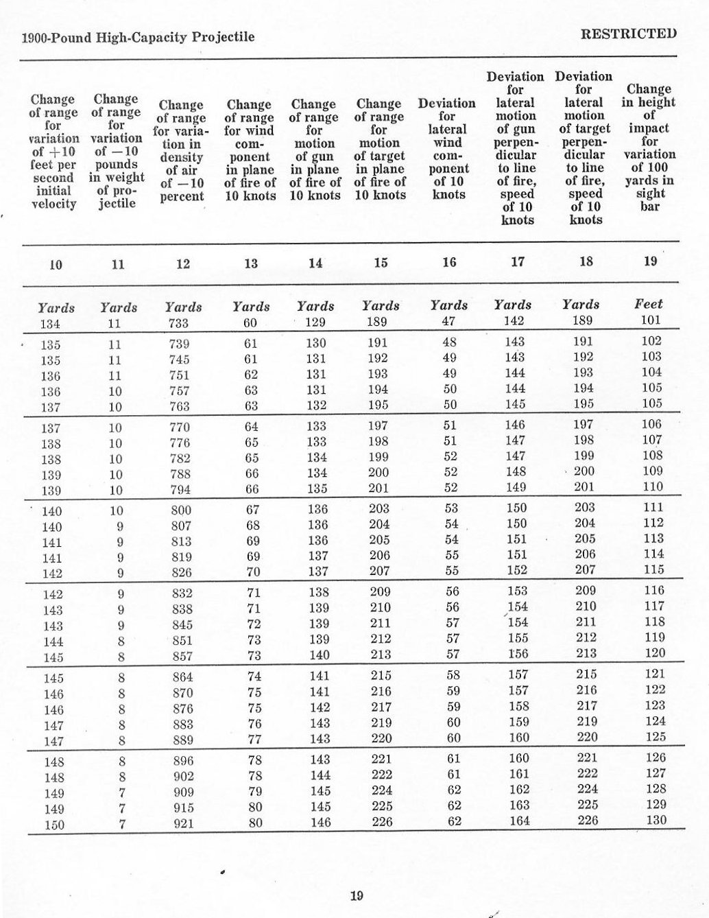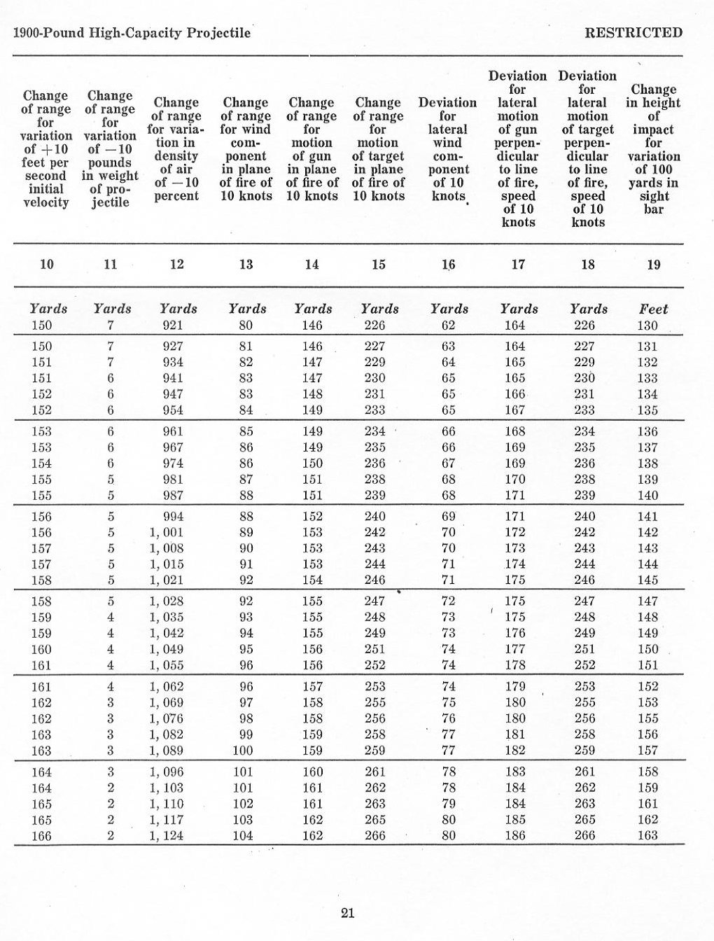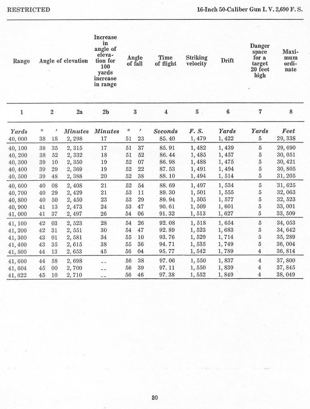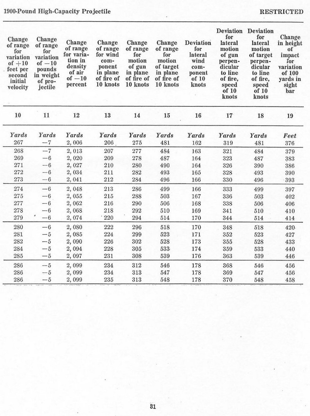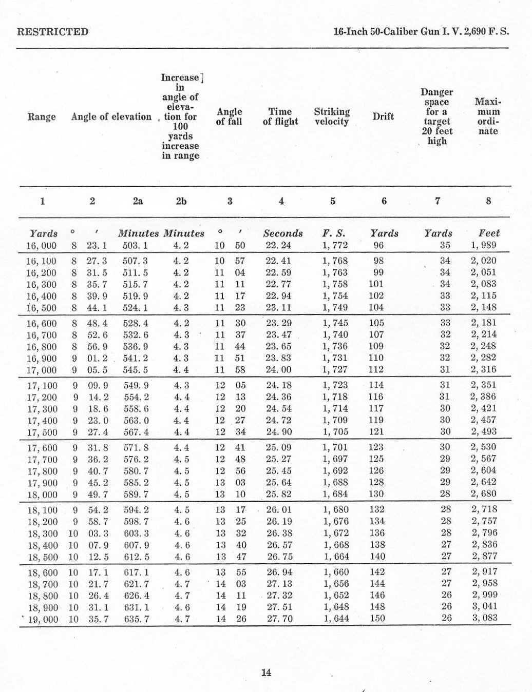 GENE SLOVERS US NAVY PAGES OP 1100 RANGE TABLES FOR THE 16" HC MK 13 Mod 0 1900lb PROJECTILE FOR THE 16"/50 GUN |