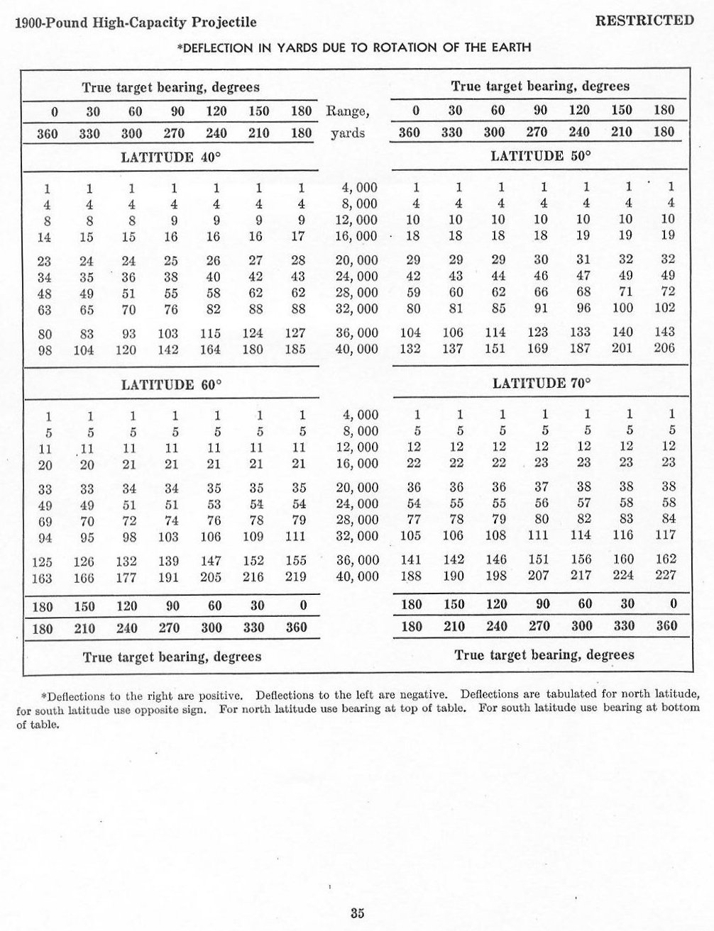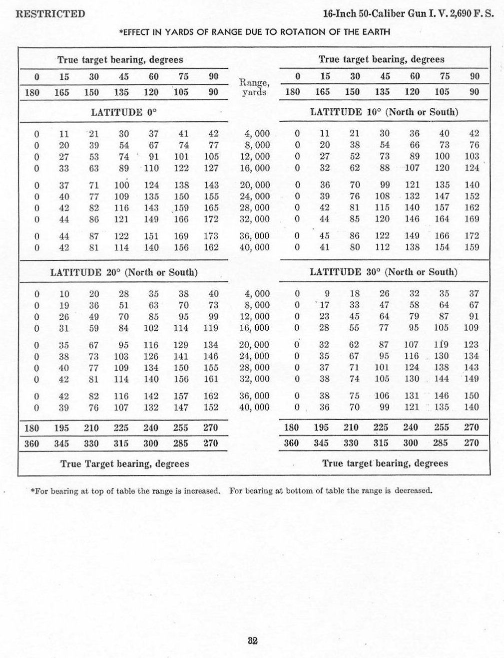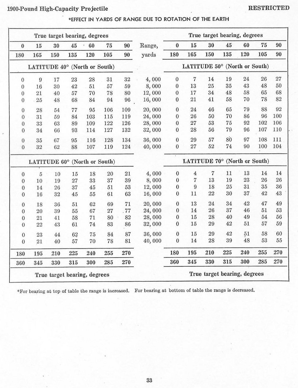 RANGE TABLES FOR THE 16" HC MK 13 Mod 0 1900lb PROJECTILE FOR THE 16"/50 GUN