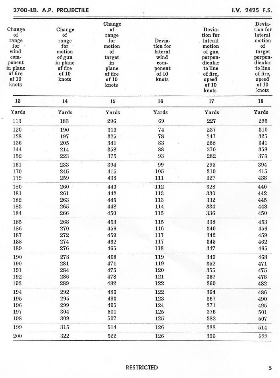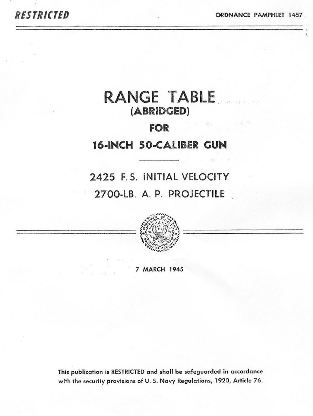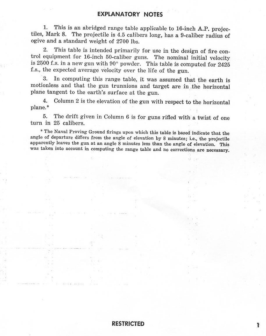 ABRIDGED RANGE TABLES FOR THE 16" AP MK 8 Mod 0 2700lb PROJECTILE FOR THE 16"/50 GUN