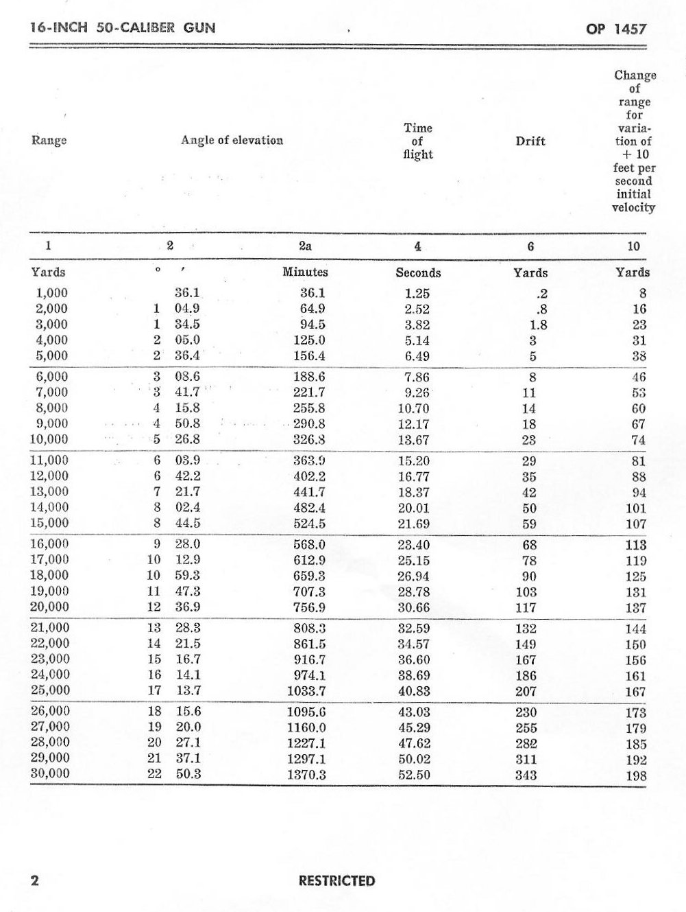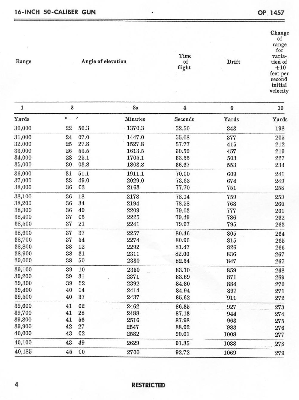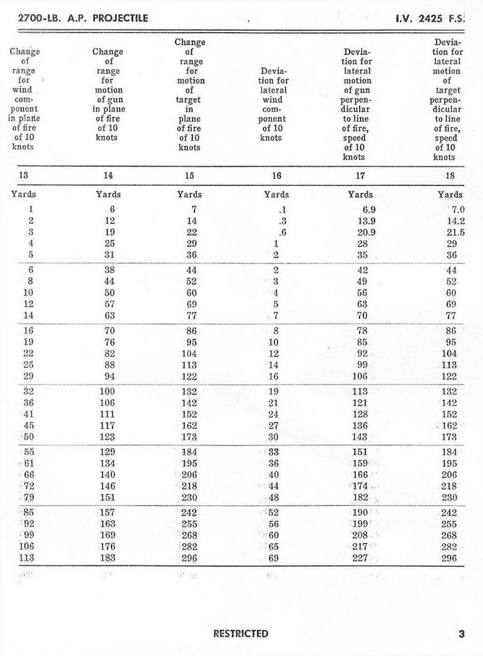 ABRIDGED RANGE TABLES FOR THE 16" AP MK 8 Mod 0 2700lb PROJECTILE FOR THE 16"/50 GUN