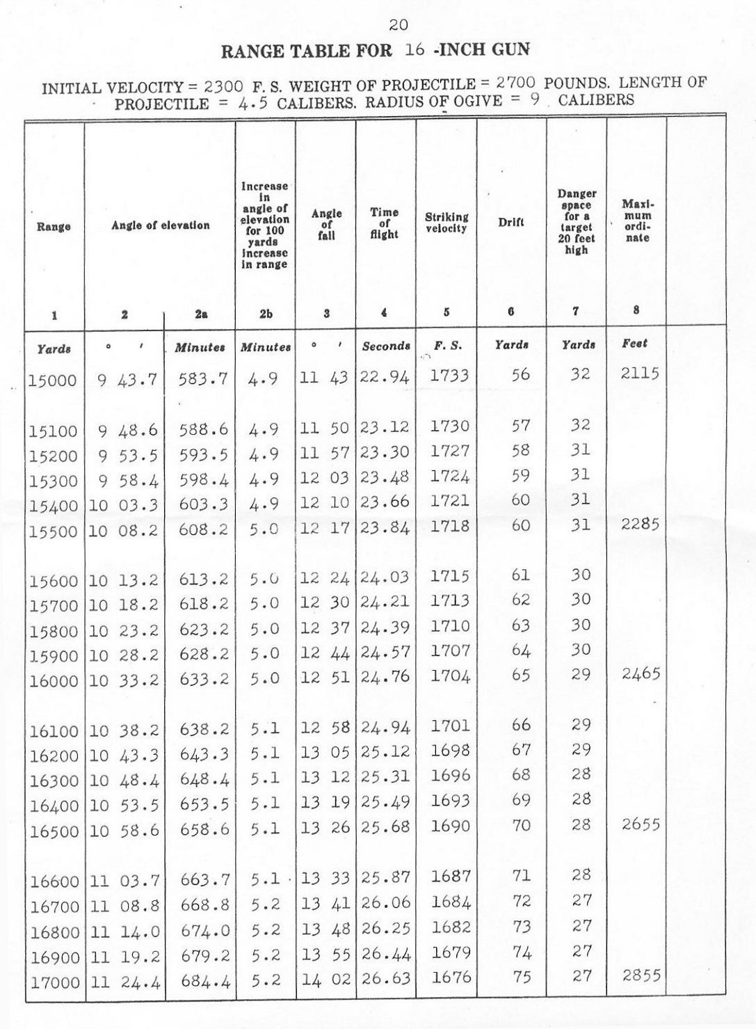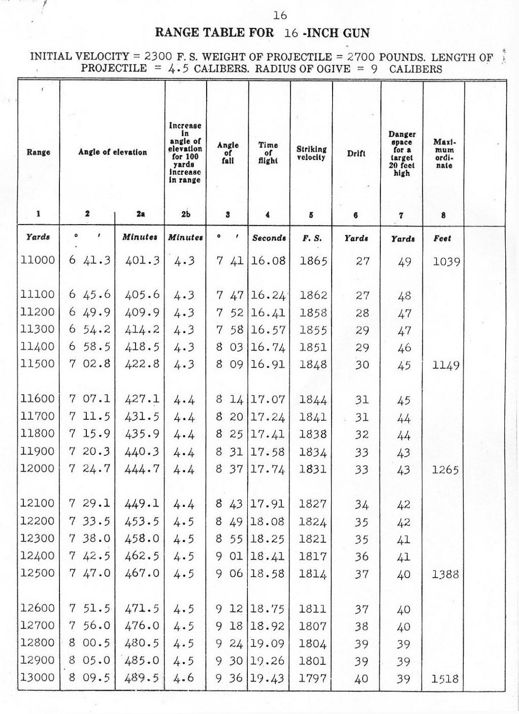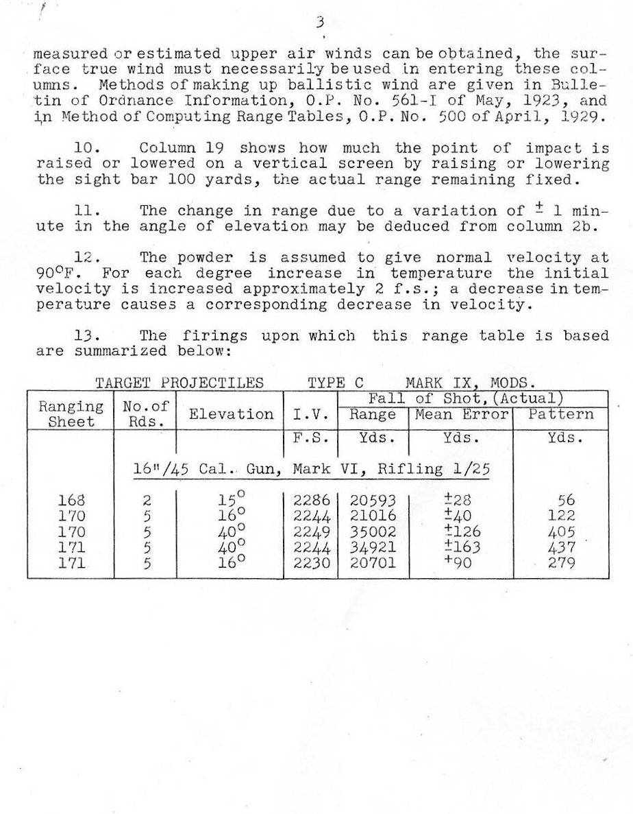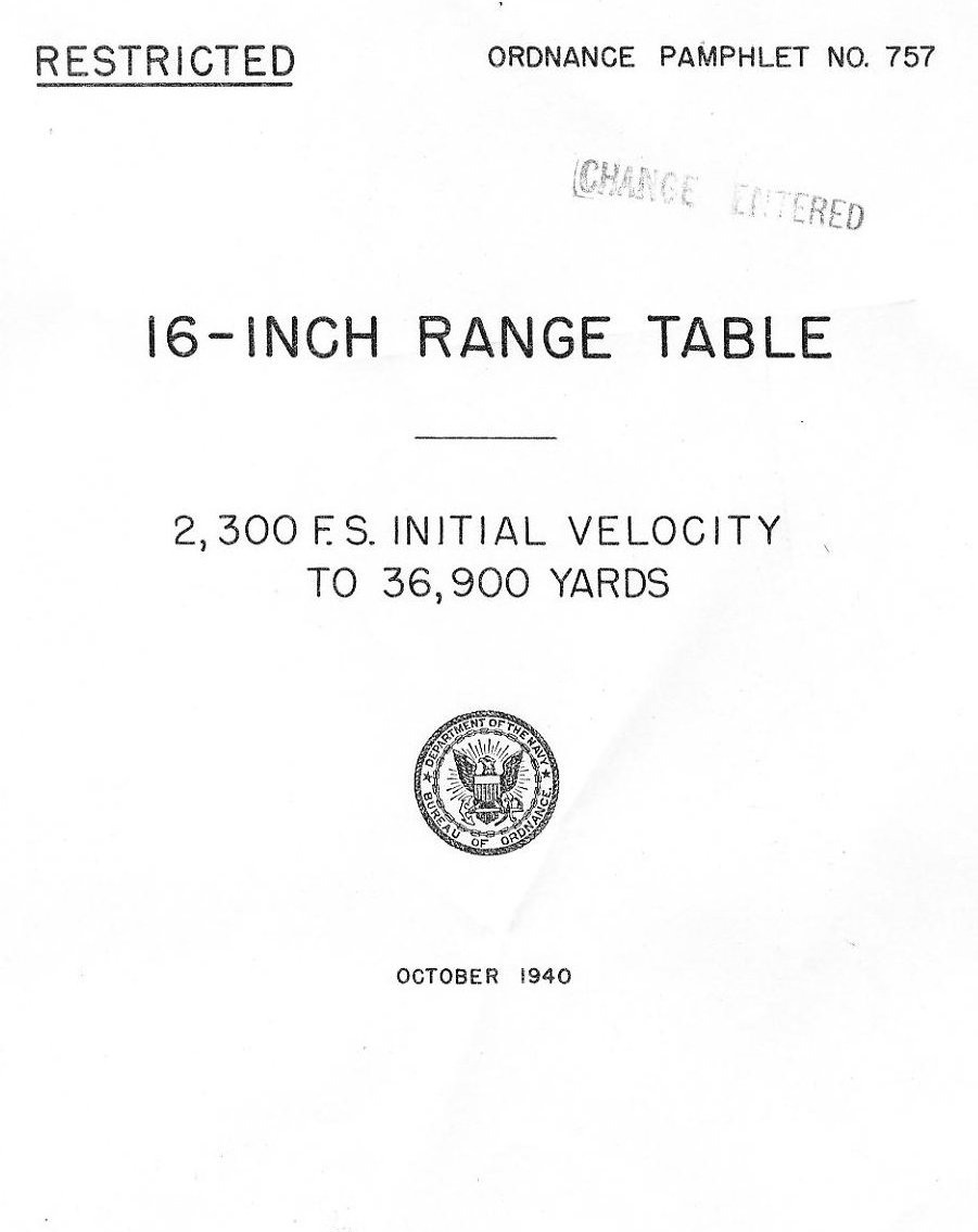 RANGE TABLES FOR 16"/45 CALIBER GUN, MARK VI,