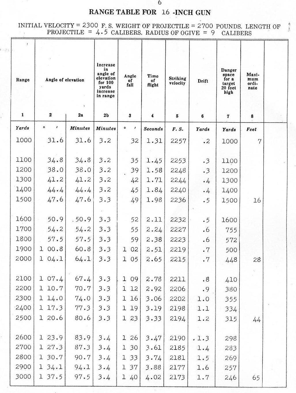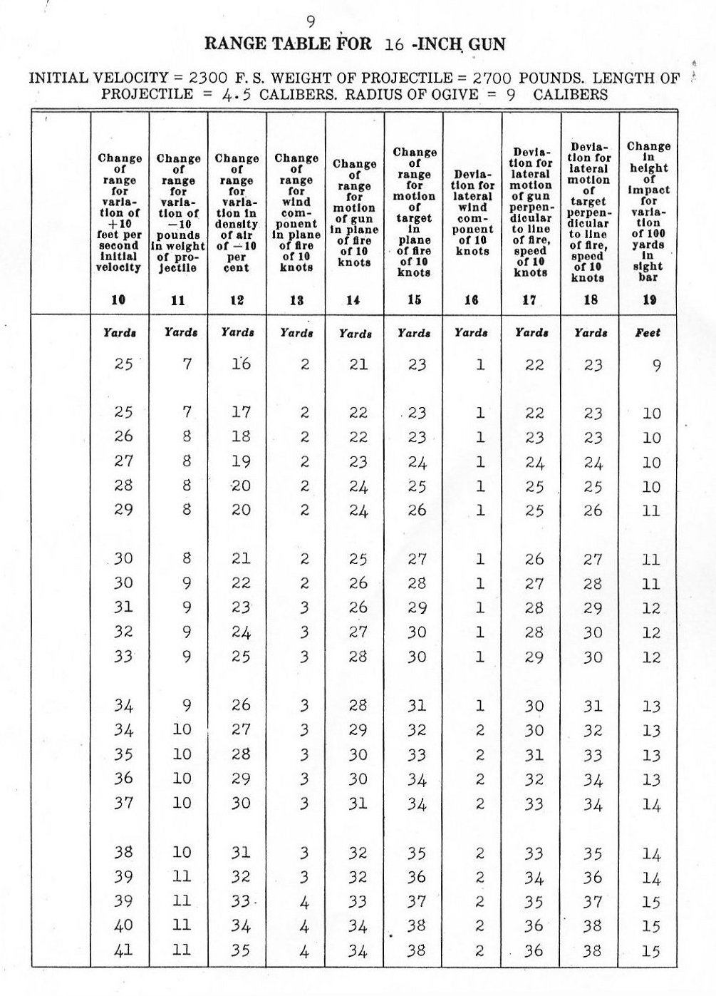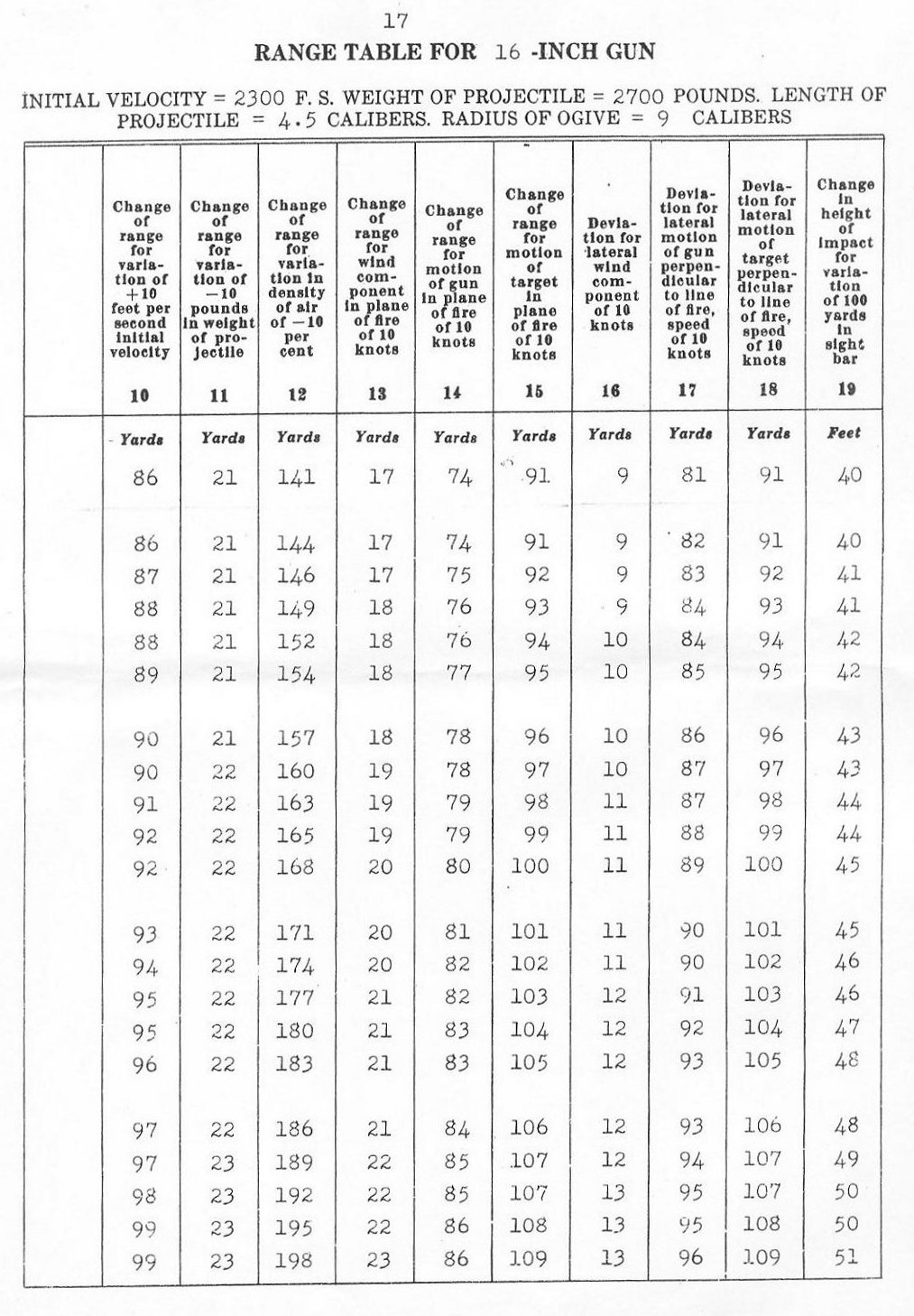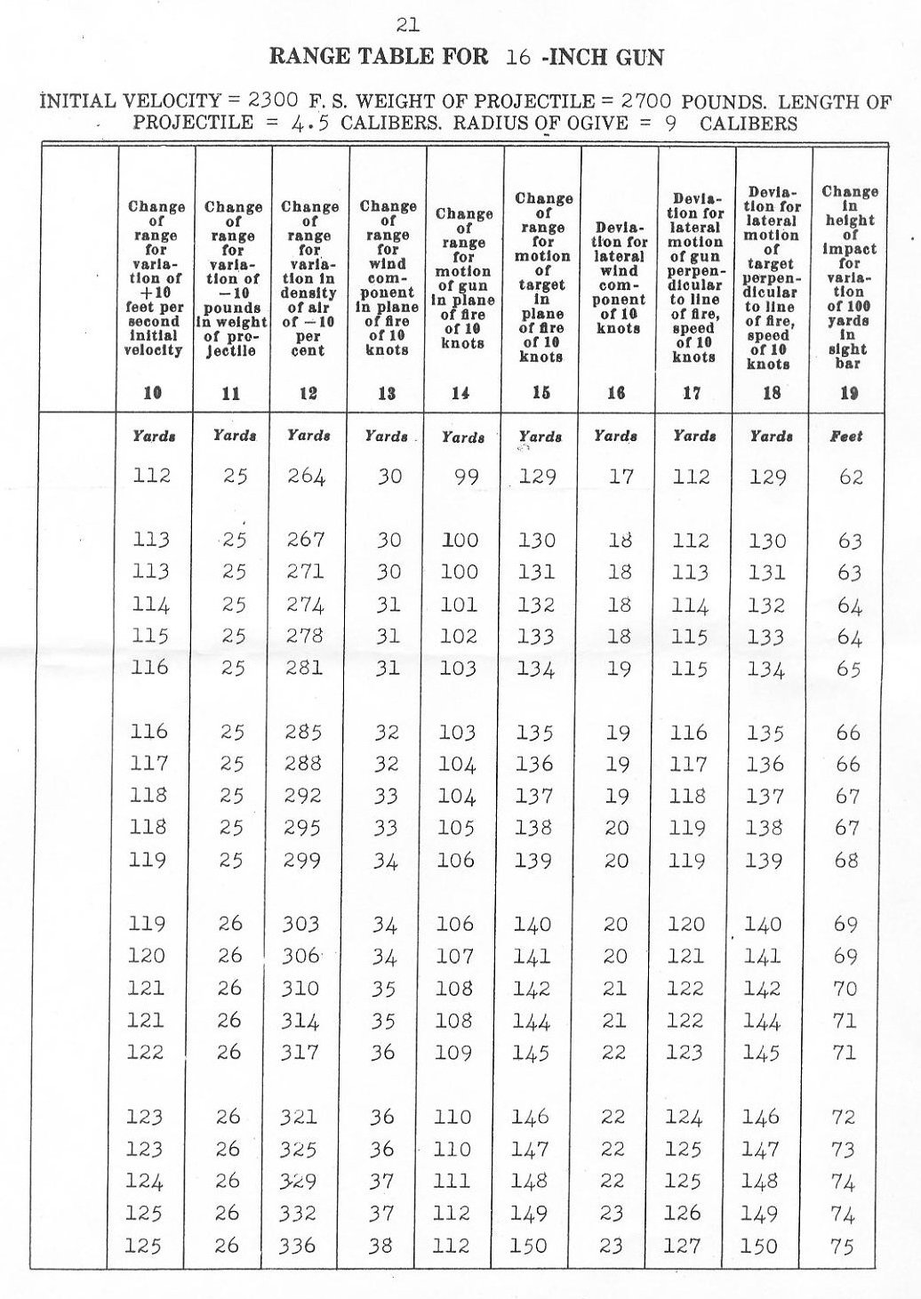 RANGE TABLES FOR 16"/45 CALIBER GUN, MARK VI,