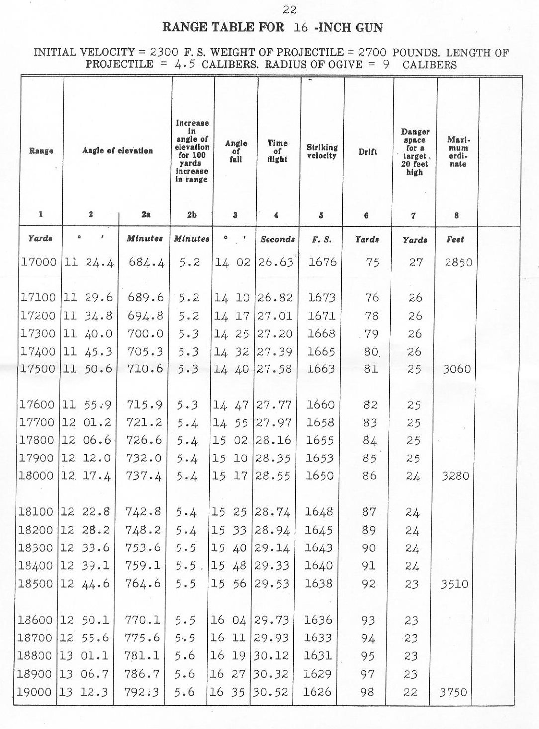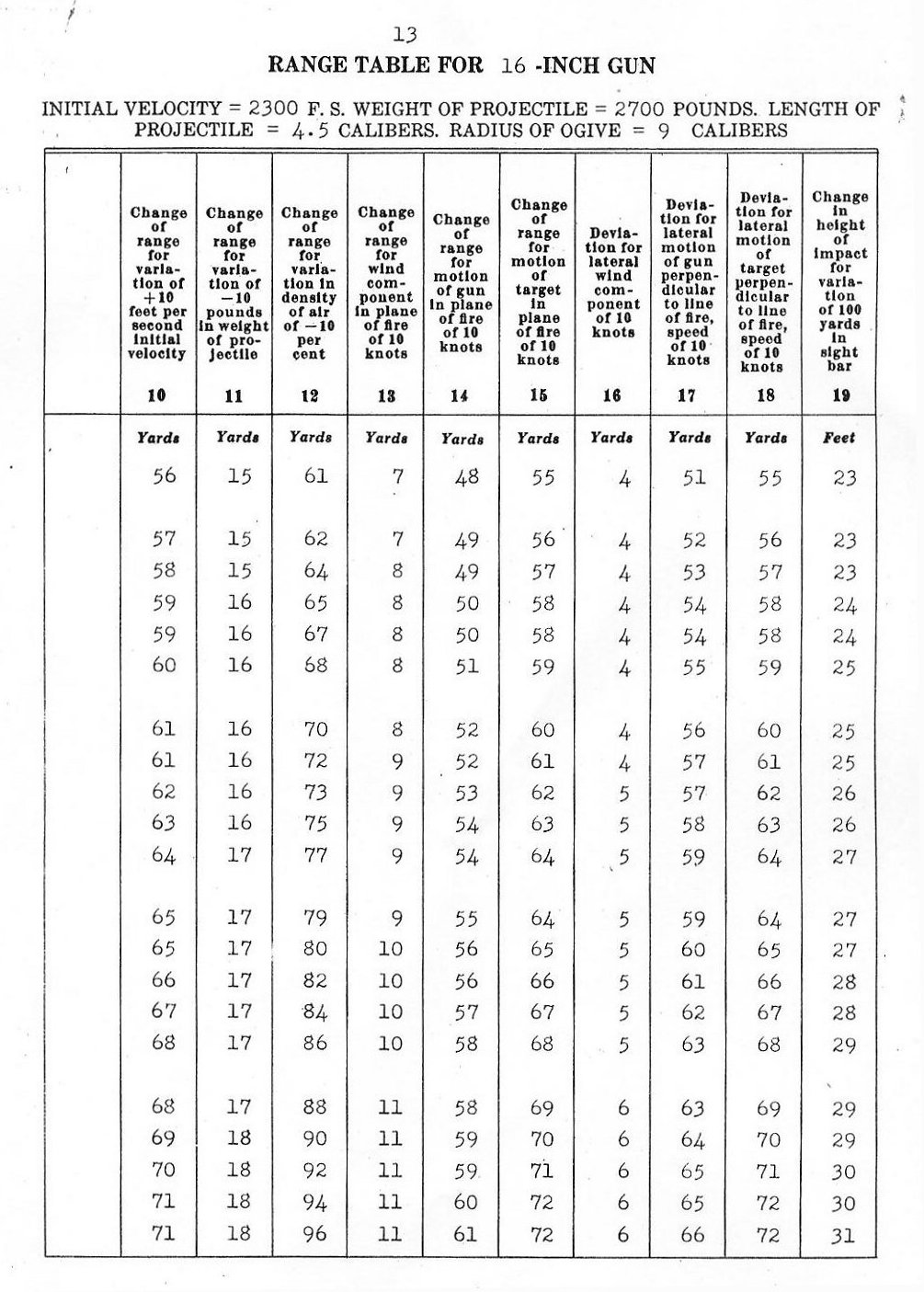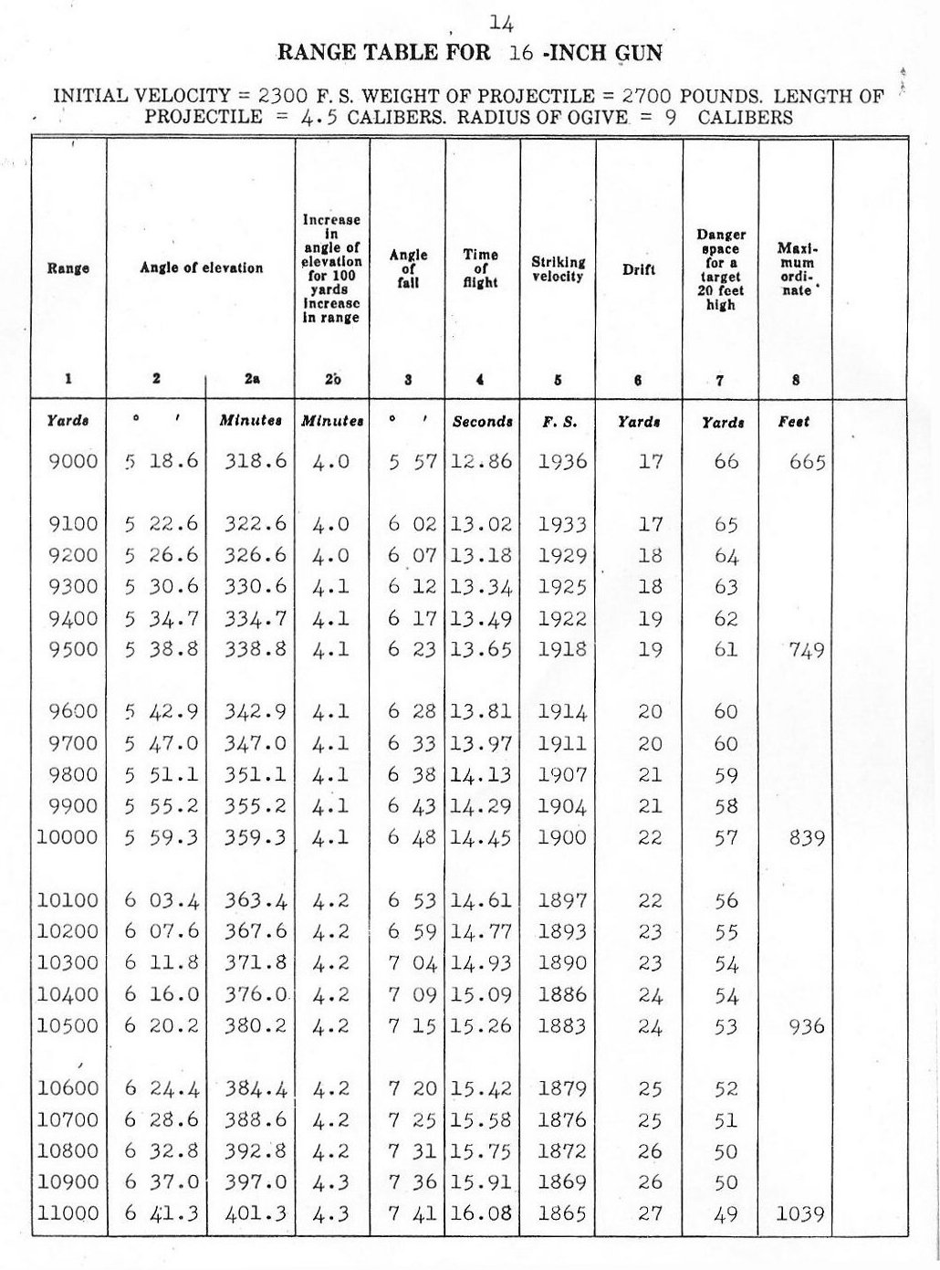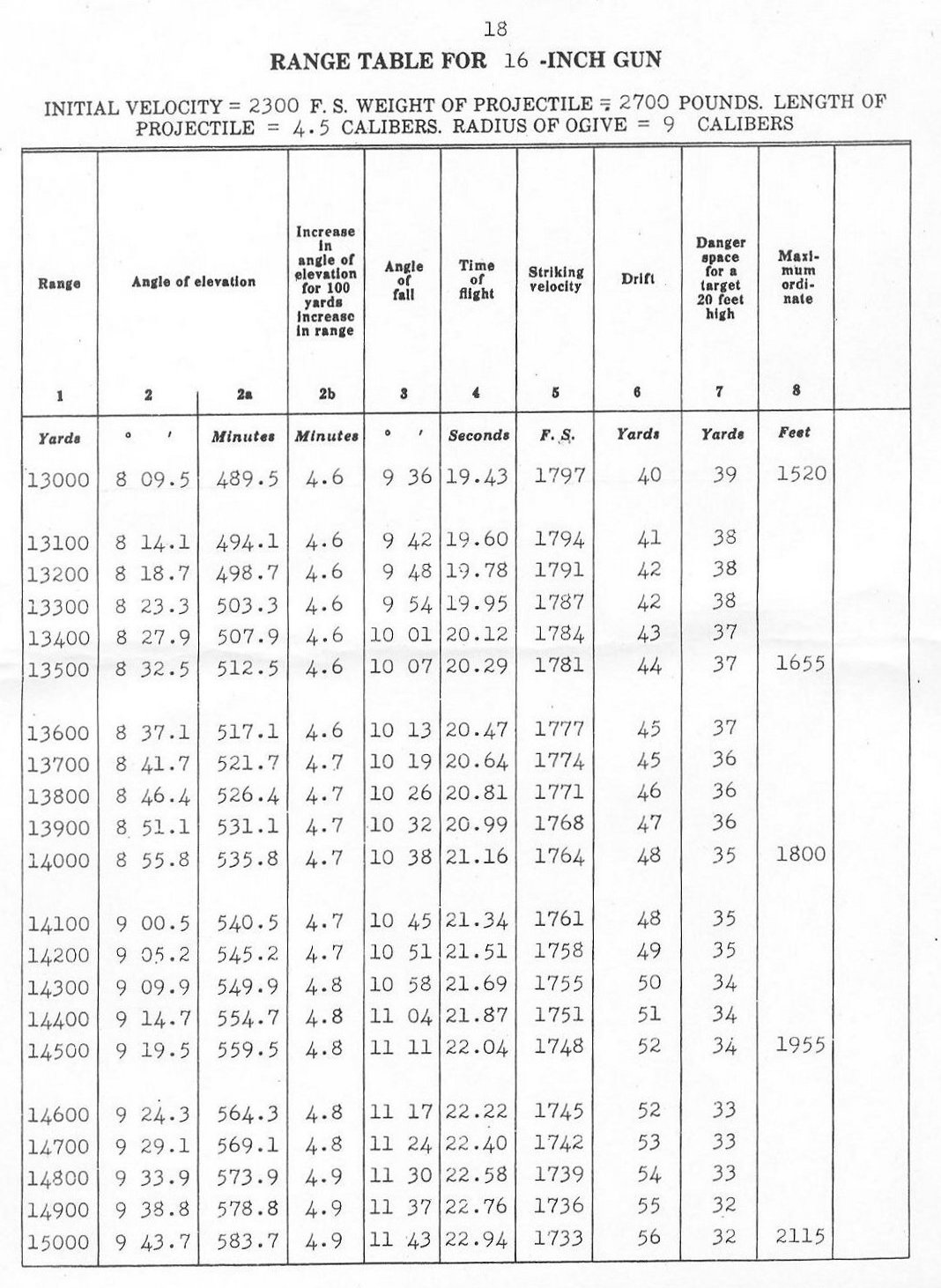 RANGE TABLES FOR 16"/45 CALIBER GUN, MARK VI,