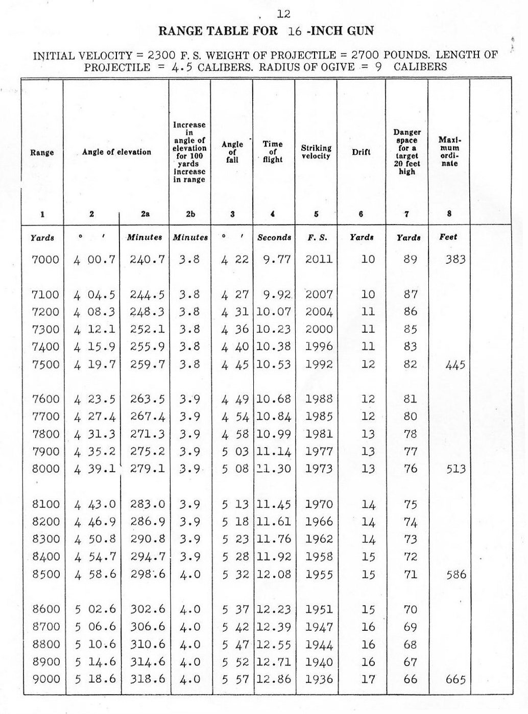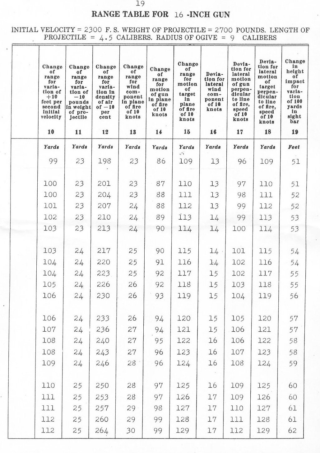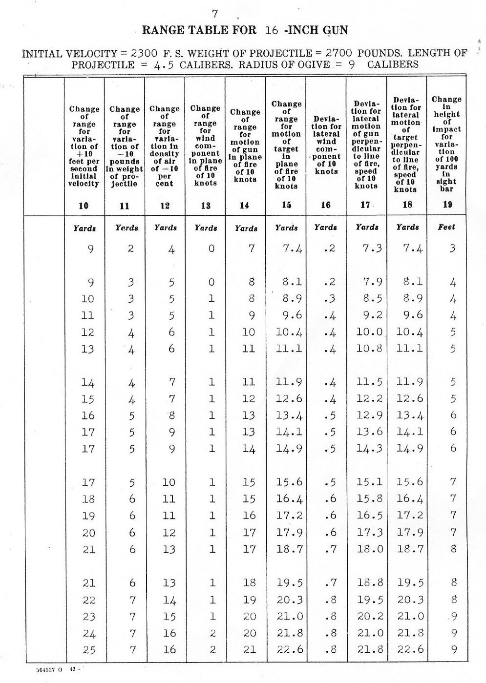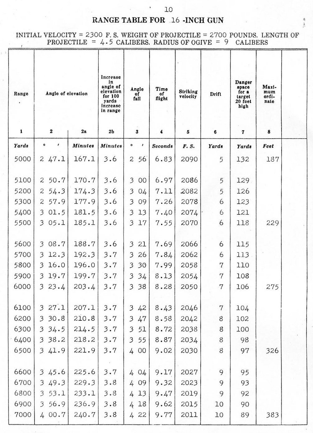 RANGE TABLES FOR 16"/45 CALIBER GUN, MARK VI,