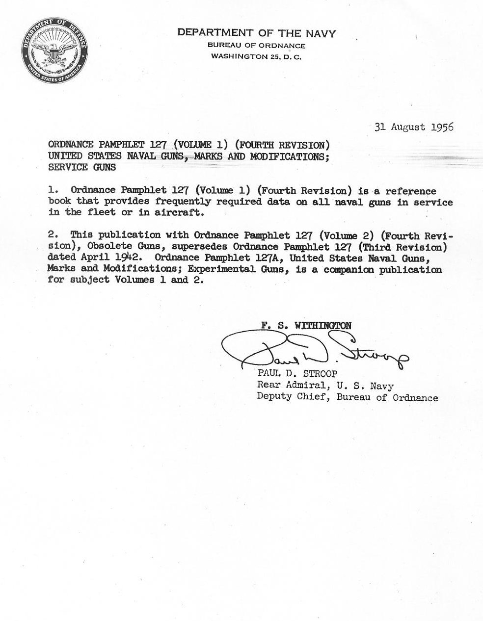 GENE SLOVERS US NAVY PAGES ORDNANCE PAMPHLET 127 UNITED STATES NAVAL GUNS THEIR MARKS AND MODIFICATIONS SERVICE GUNS 31 AUGUST 1956 |