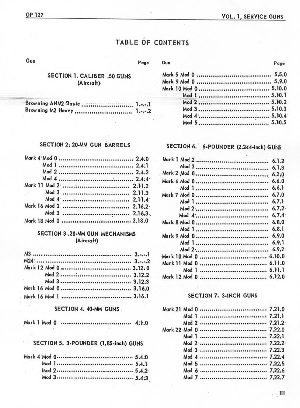 SECTION 1: CALIBER .50 GUNS (AIRCRAFT) |