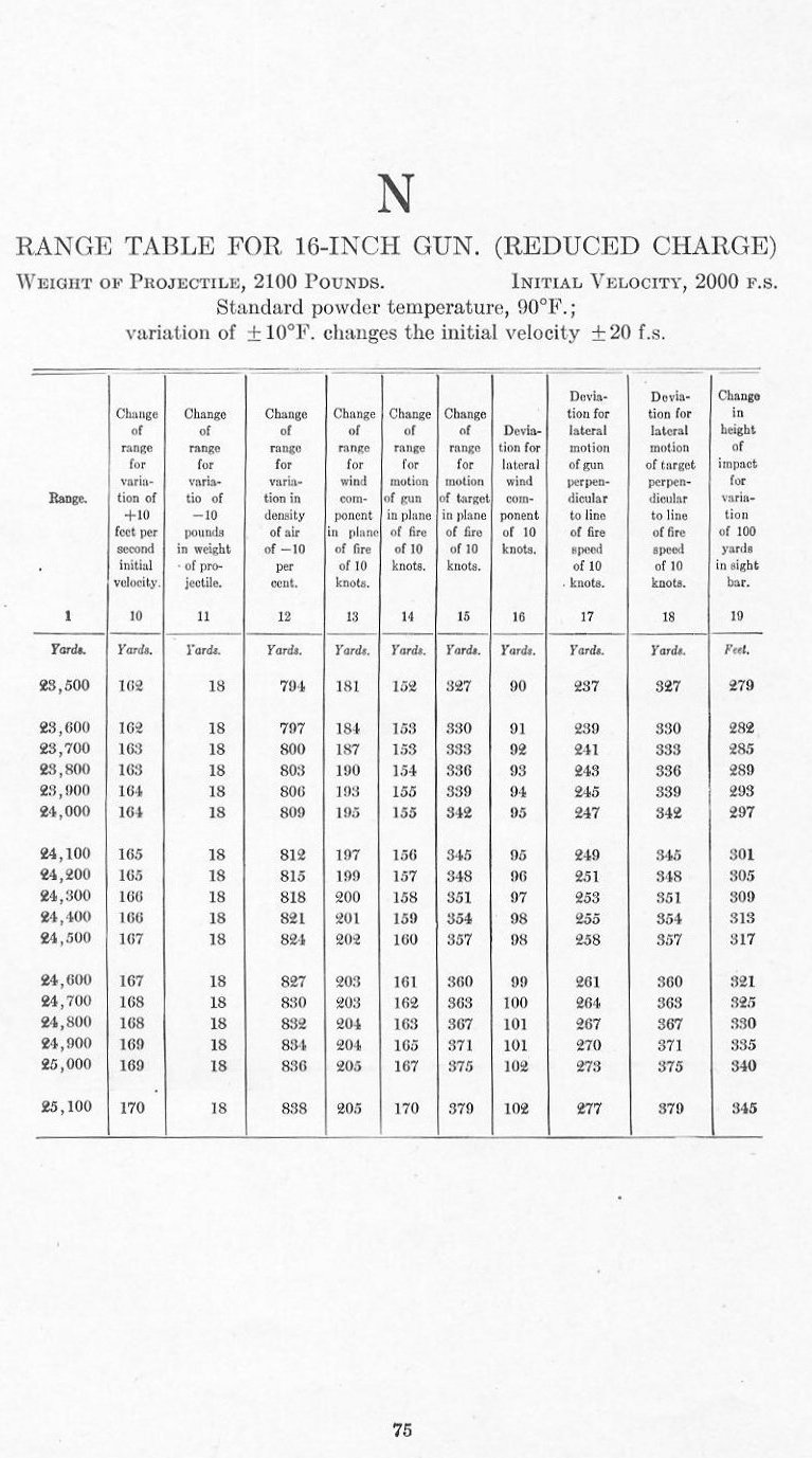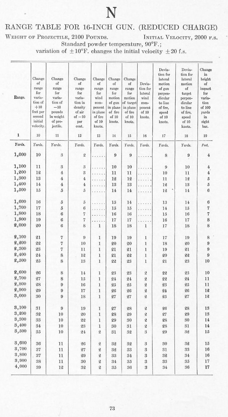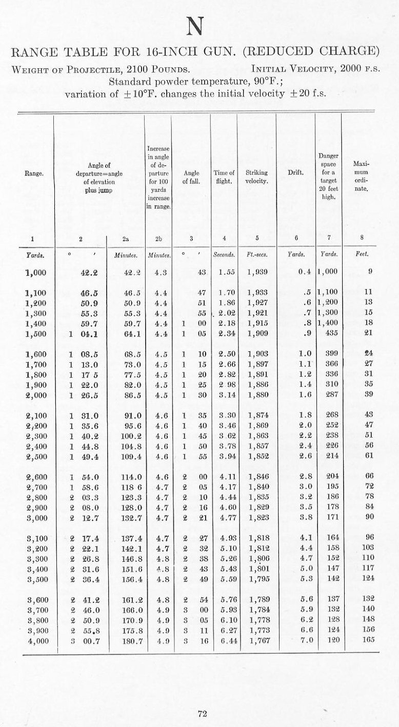 RANGE TABLES FOR 16 INCH GUN