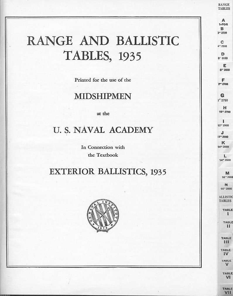 GENE SLOVERS US NAVY PAGES UNITED STATES NAVY RANGE AND BALLISTIC TABLES 1935 |