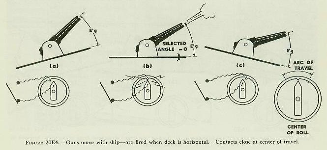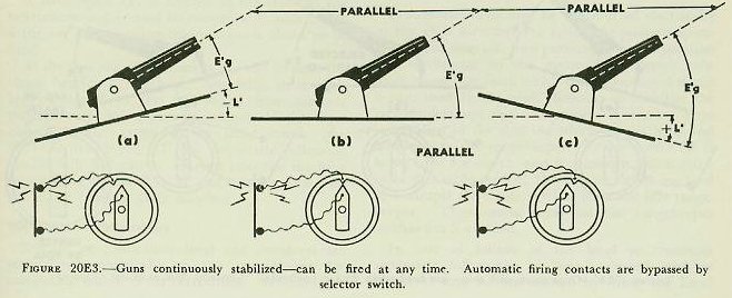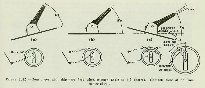 figures 20E4 and 20E5. It thus becomes necessary that the guns be fired only at such moments as aim is correct. To accomplish this, master-key fire from the stable vertical is used, preferably utilizing the automatic contact makers provided for this purpose.
