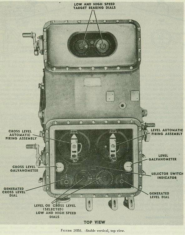 The stable vertical is a device for indicating the true horizontal plane, and for measuring the values of level and crosslevel. It may be separately mounted or incorporated in a gun director.