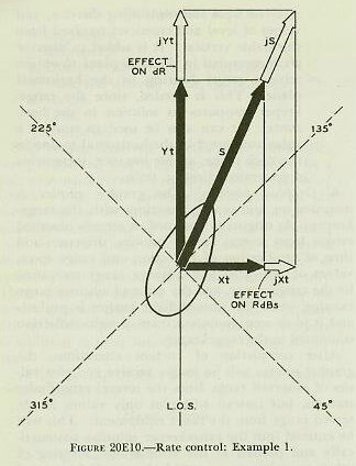 When A is changed so as to bring the direction of target motion at right angles to the direction of the line of sight, the deflection and range rates due to target motion increase and diminish respectively. Furthermore, changing A in the direction of its 90° value causes RdBs to become more positive, while a change toward 270° makes it become more negative.