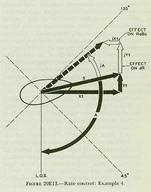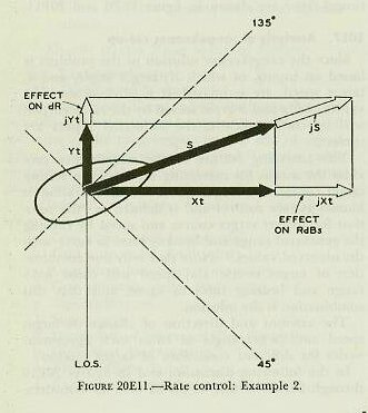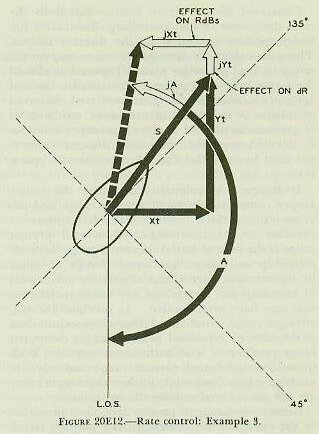figure 20E10 (A between 135° and 225° or between 315° and 45°), changing S has a greater effect on dR than on RdBs. If the direction of target motion is closer to being at right angles to the line of sight than along the line of sight, as in