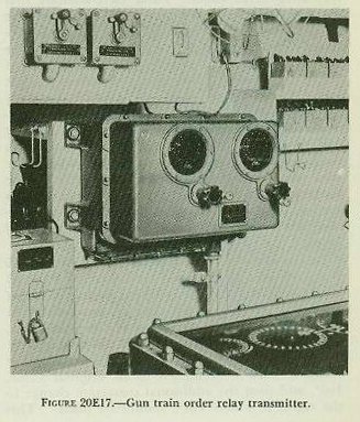 Additional equipment in the plotting room includes the gun train order relay transmitter shown in