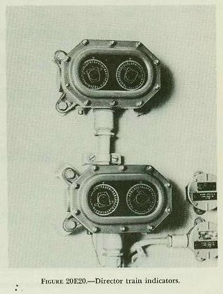 figure 20E20, are mounted on the plotting-room bulkhead. These instruments show the train angle of the forward and after main and secondary battery directors.