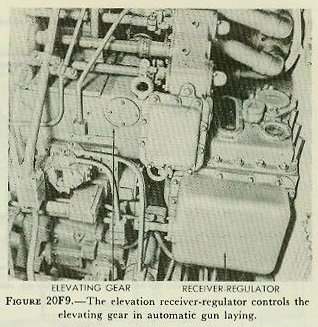In automatic gun laying the gun elevation order is received by the elevation receiver-regulators, which automatically control the A-ends of the elevating gears, and thus the elevation of the guns.
