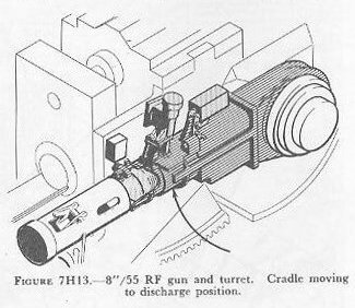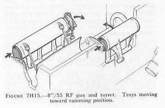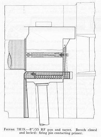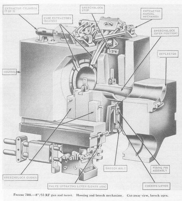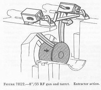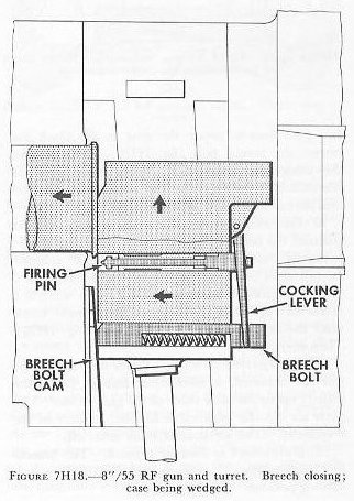 | HOME INDEX Chapter 7 Turret Installations A. Introduction B. Gun and breech assembly C. Slide assembly D. Elevating, traning and sight gear E. Ammunition handling F. Turrets equiped with case guns G. 6"/47 dual-purpose gun and turret H. 8"/55 rapid-fire gun and turret |